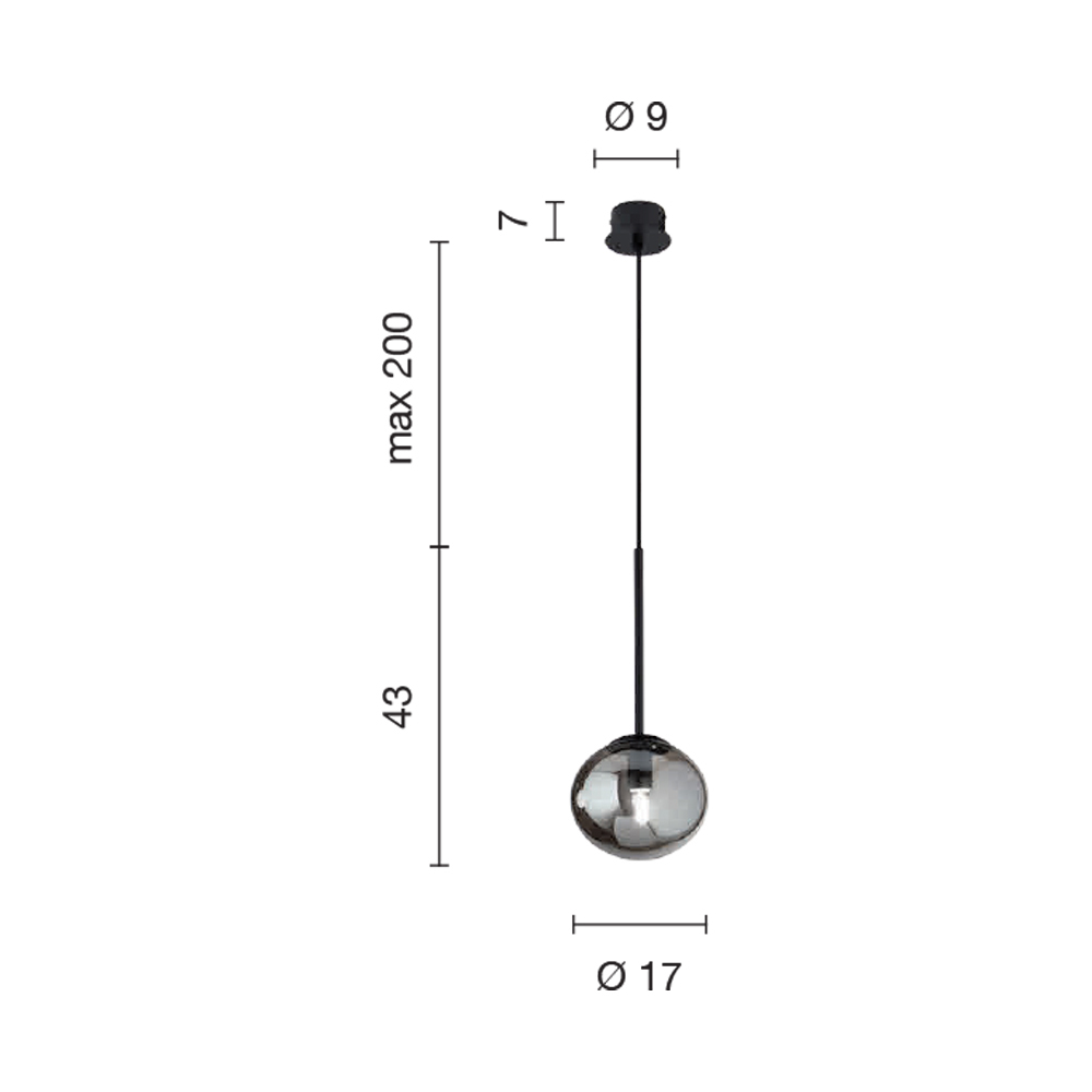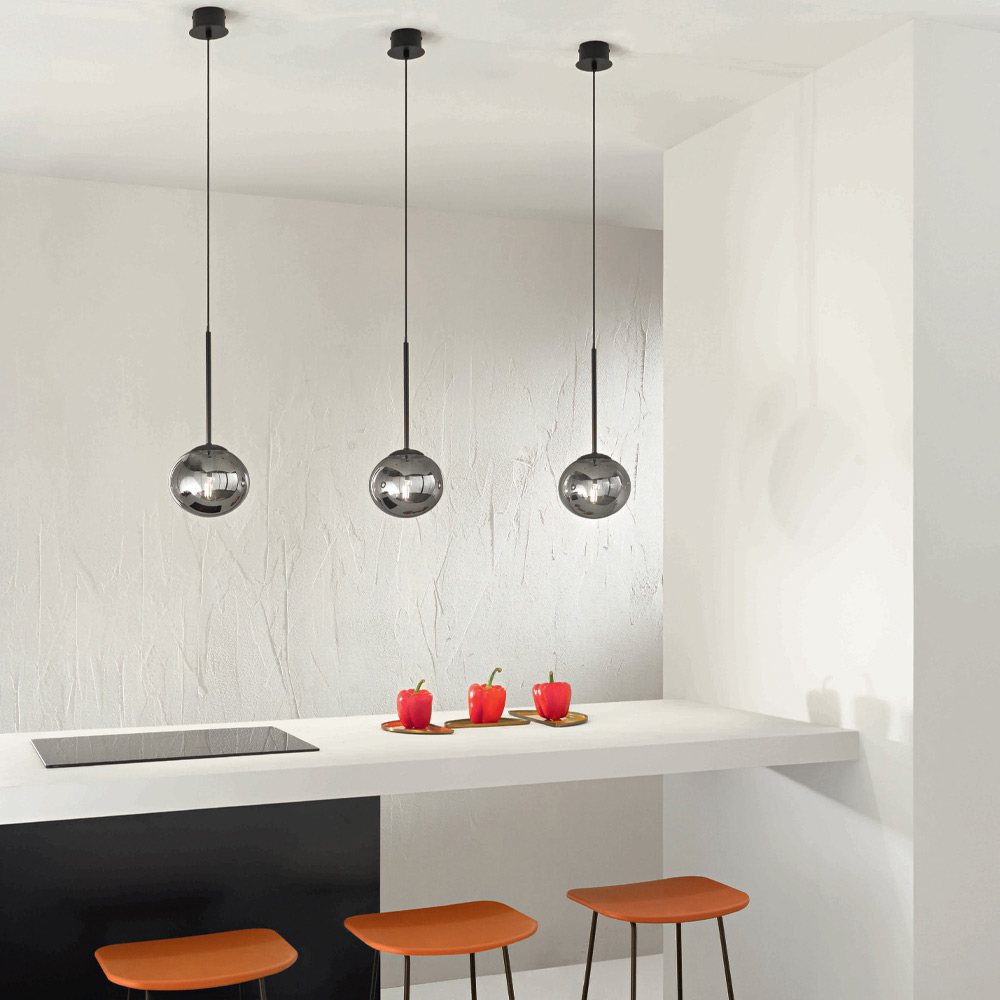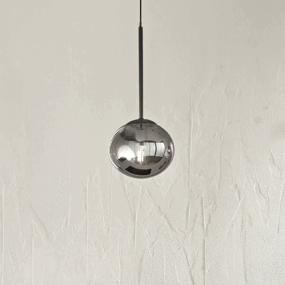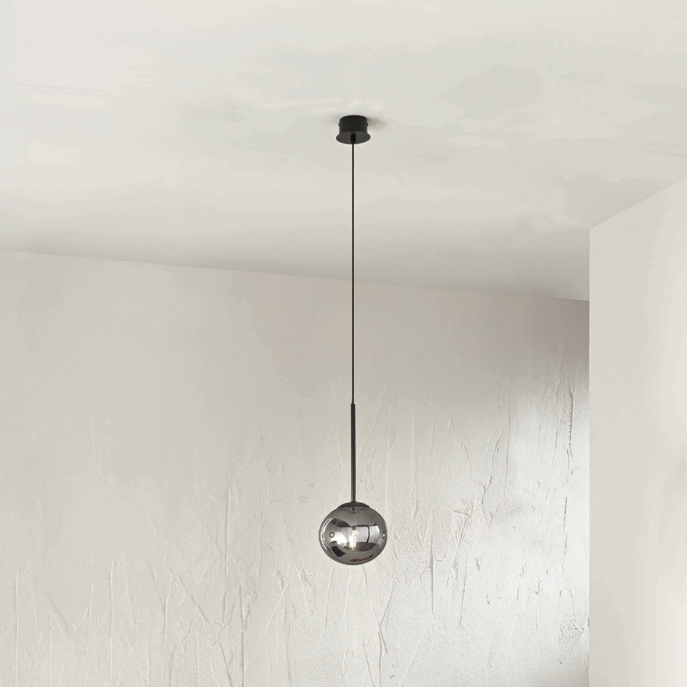 Hänglampa med LED-ljus i lackerad metall och blåst glas Tillverkad i Italien