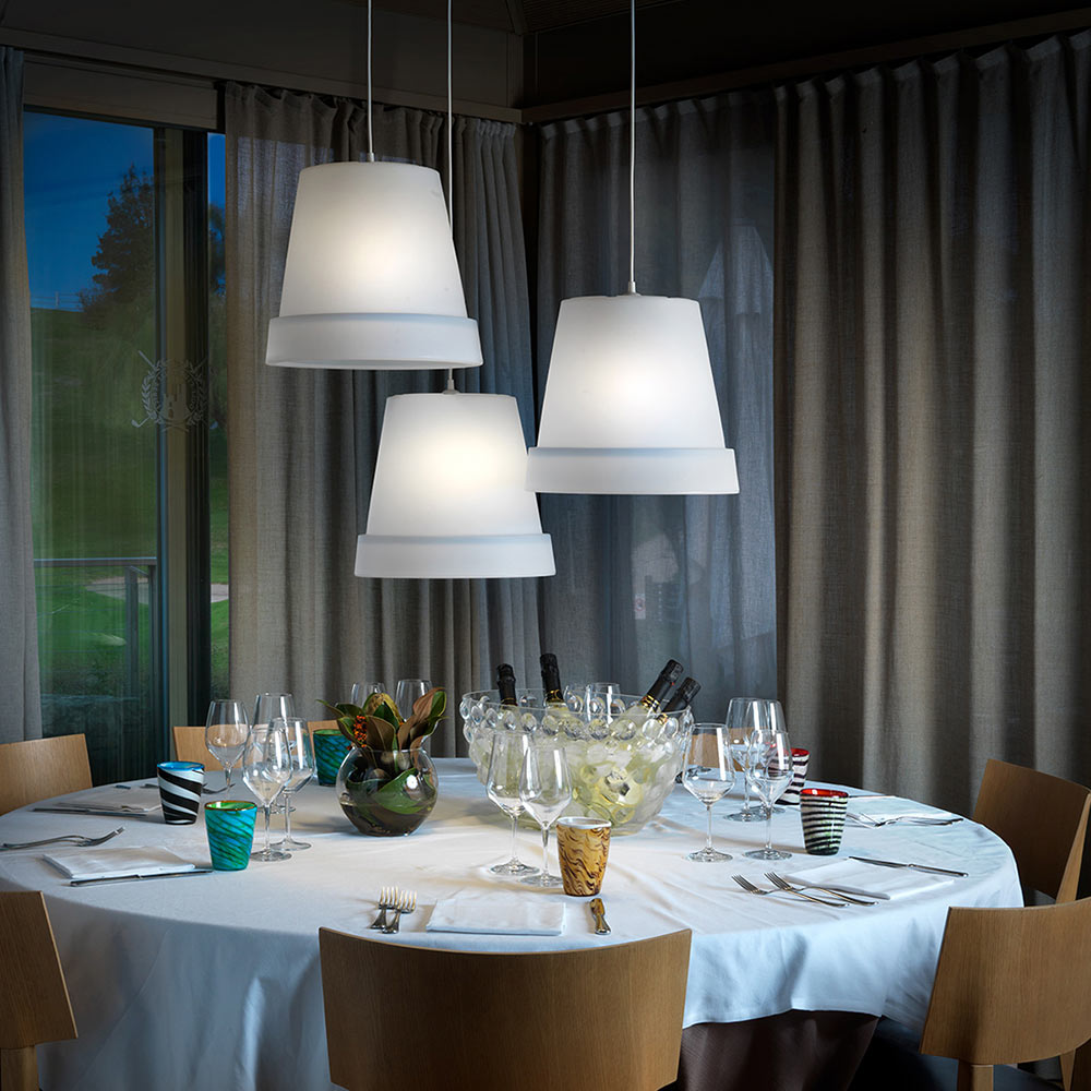 Pendellampa inomhus i pärlpolyeten Tillverkad i Italien