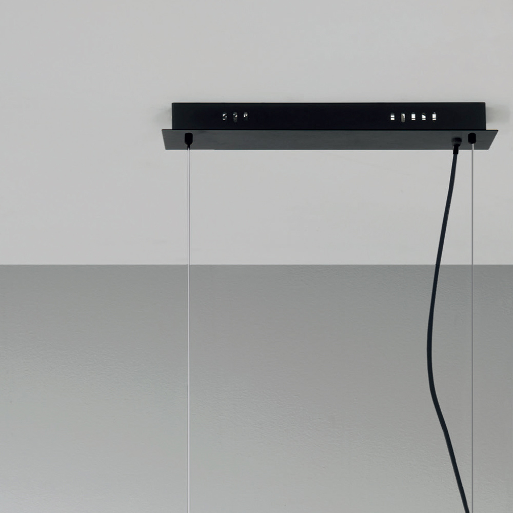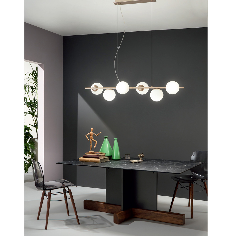 föds en originell och raffinerad inredningslösning som kan erövra centrum för uppmärksamheten i moderna hemmiljöer. Dess struktur utvecklas på en enda linje vilket gör den till en särskilt lämplig lösning för att belysa ditt bord inne i matsalen eller köket.