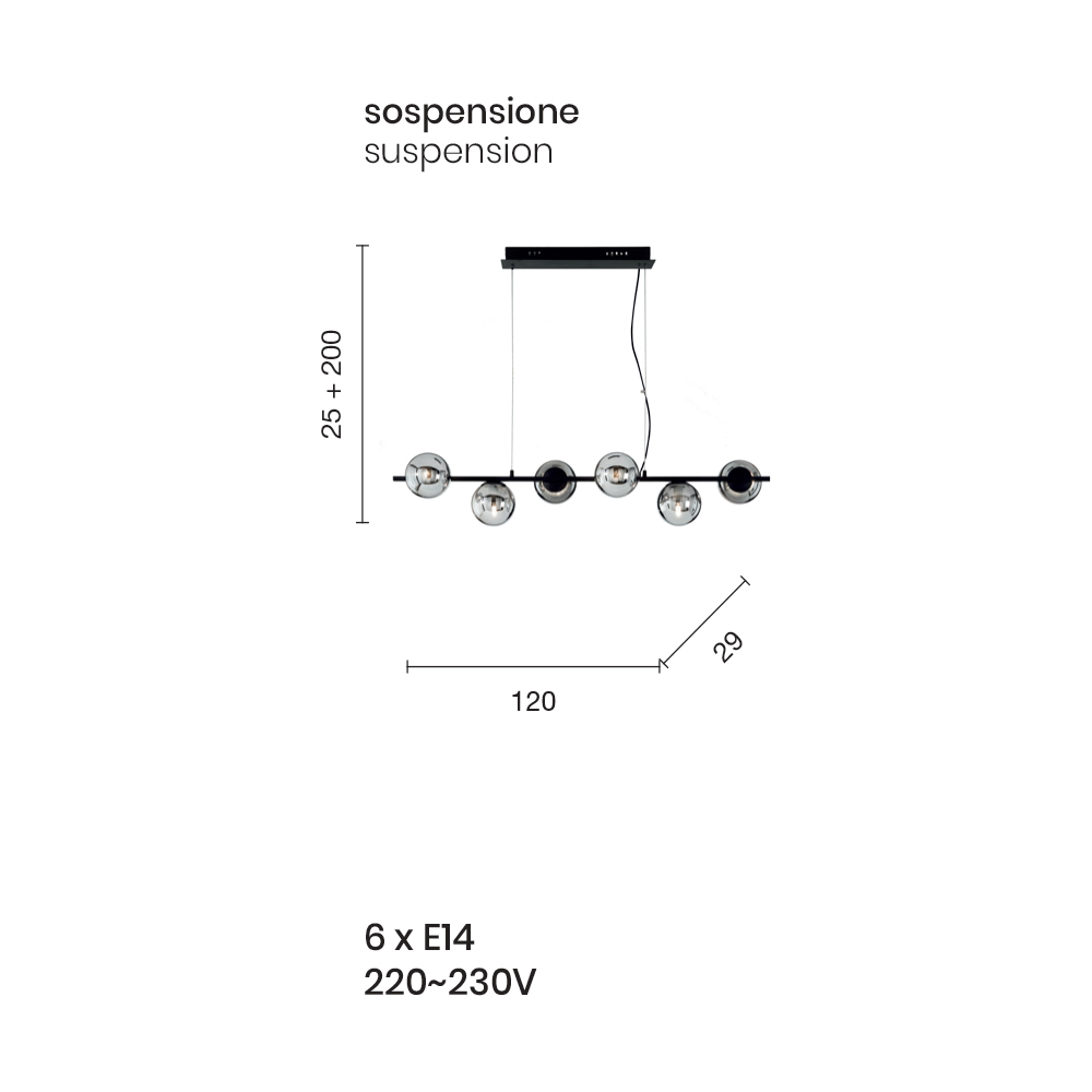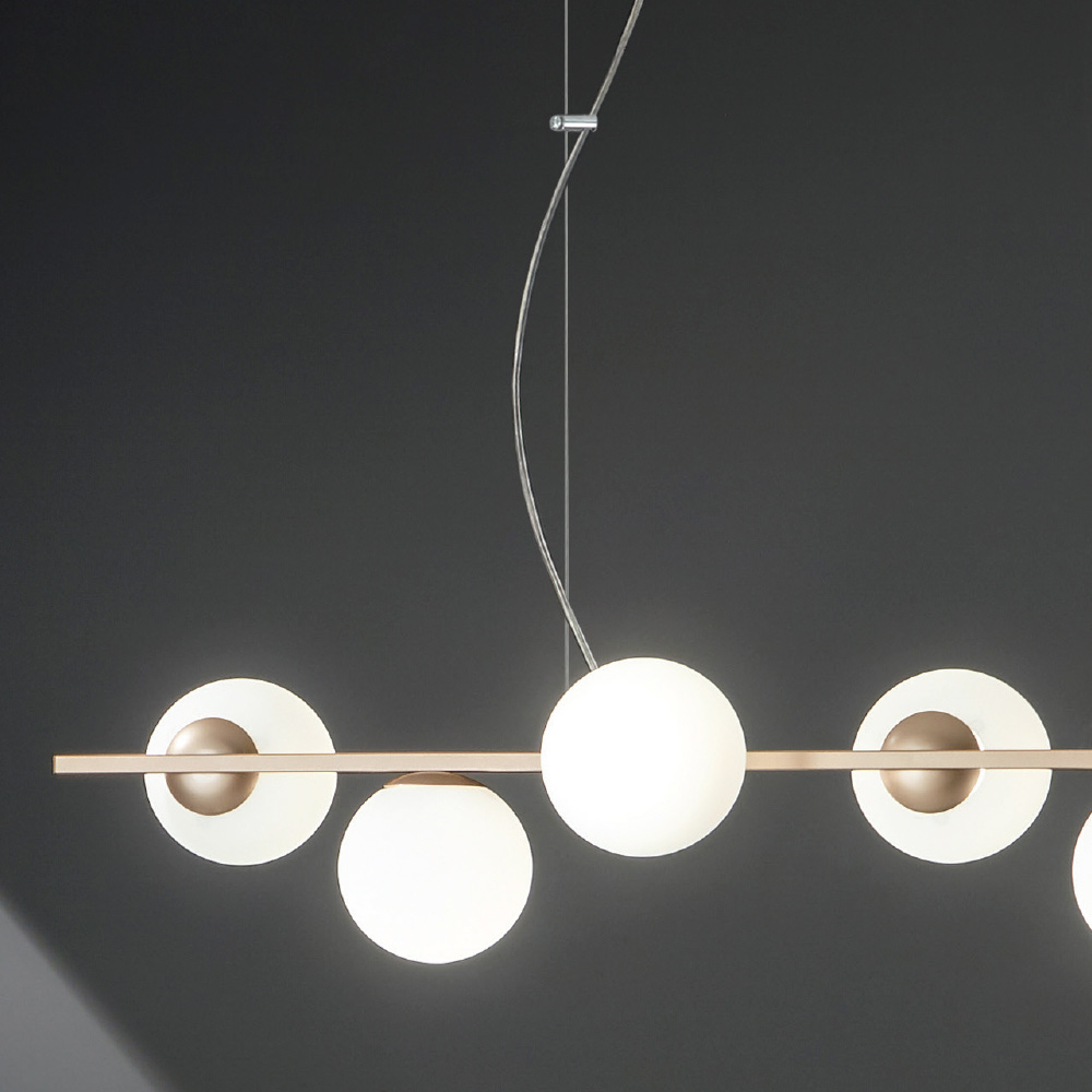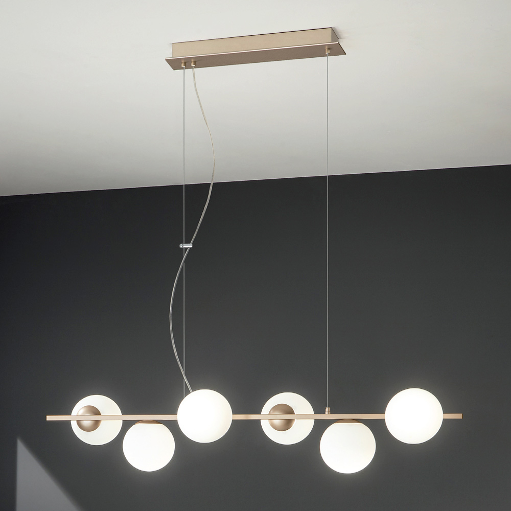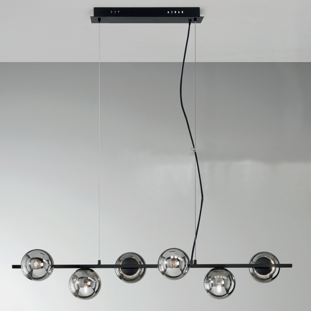 Fjädrad lampa med 6 lampor med metallstruktur och sfäriska