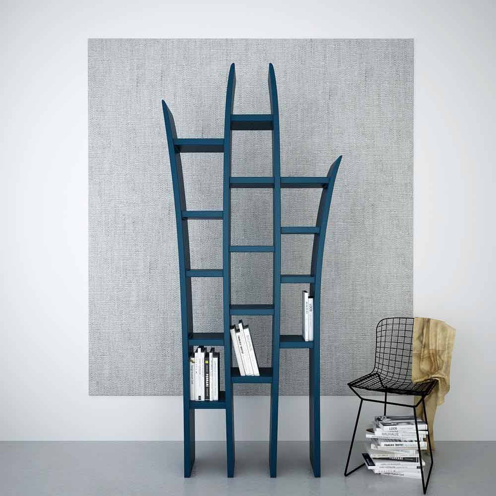 Bokhyllan "Herba" är, som namnet antyder, inspirerad av gräsets rörelse i naturen. Varje vertikal del har designats med en lätt krökning och en tunn spets, för att representera dess utseende på ett verkligt sätt. Tillverkad med Solid Surface ;, finns i två färgvarianter: Vit (RAL9003) eller Havsblått (RAL5020).