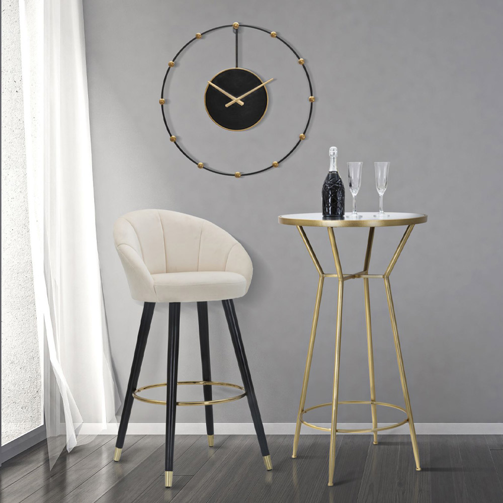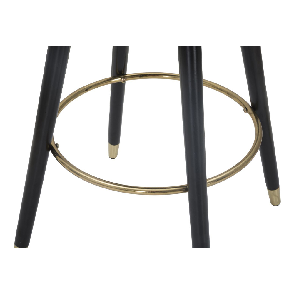 guldfärgade järndetaljer och stoppad sits täckt med tyg. Dess design kompletteras och görs ännu mer funktionell av det