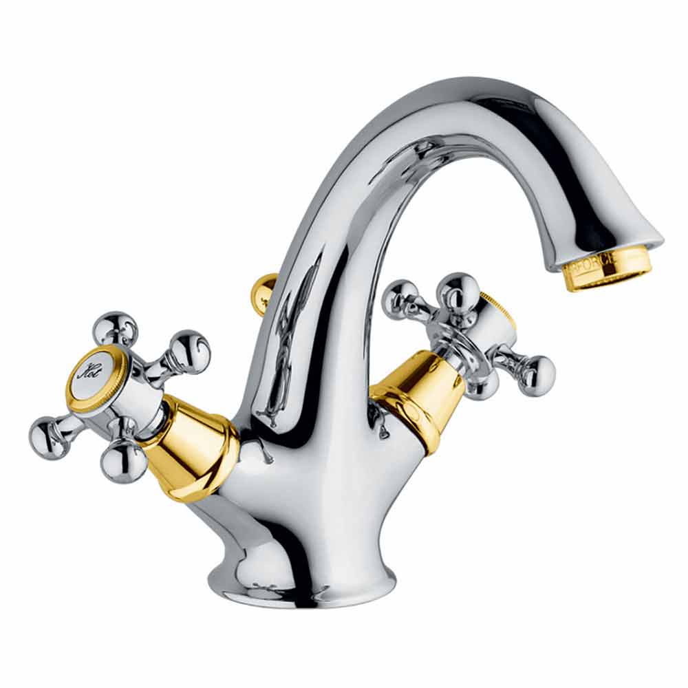 Klassisk enhålsblandare av mässing för tvättställ i badrum. Tillverkad i Italien.