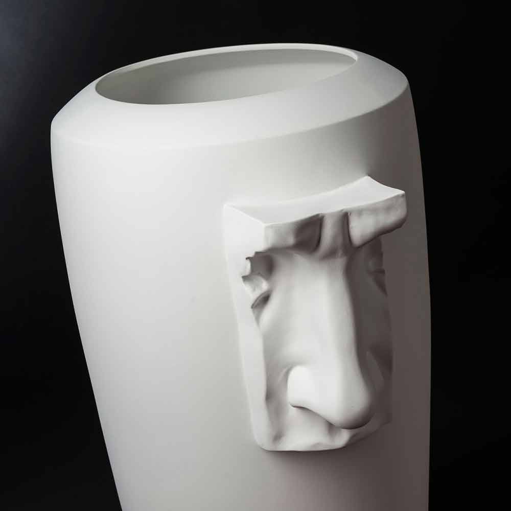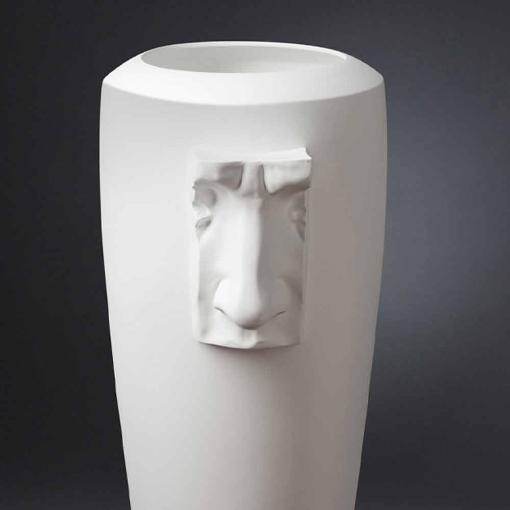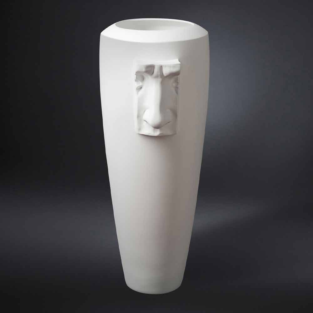 Original dekorativ vas inomhus i ogenomskinlig vit keramik handgjord genom en 100% tillverkad i Italien produktion . En helt revolutionerande inredningsidé som kombinerar väsentliga mönster med element extrapolerade från konstverk från italiensk kultur för att skapa ett exklusivt dekorativt element som kan revolutionera stilen i alla moderna miljöer, vilket ger en touch av originalitet och en extremt kreativ estetik. . Hantverket understryker dess värde och präglas av precision, passion och kärlek för tradition. Resultatet är en idé om exklusiva möbler som är idealiska för de mest varierade miljöerna, från heminredning till hotell, restauranger, kontraktsområden, spa men också som en miljö för evenemang och bröllop.