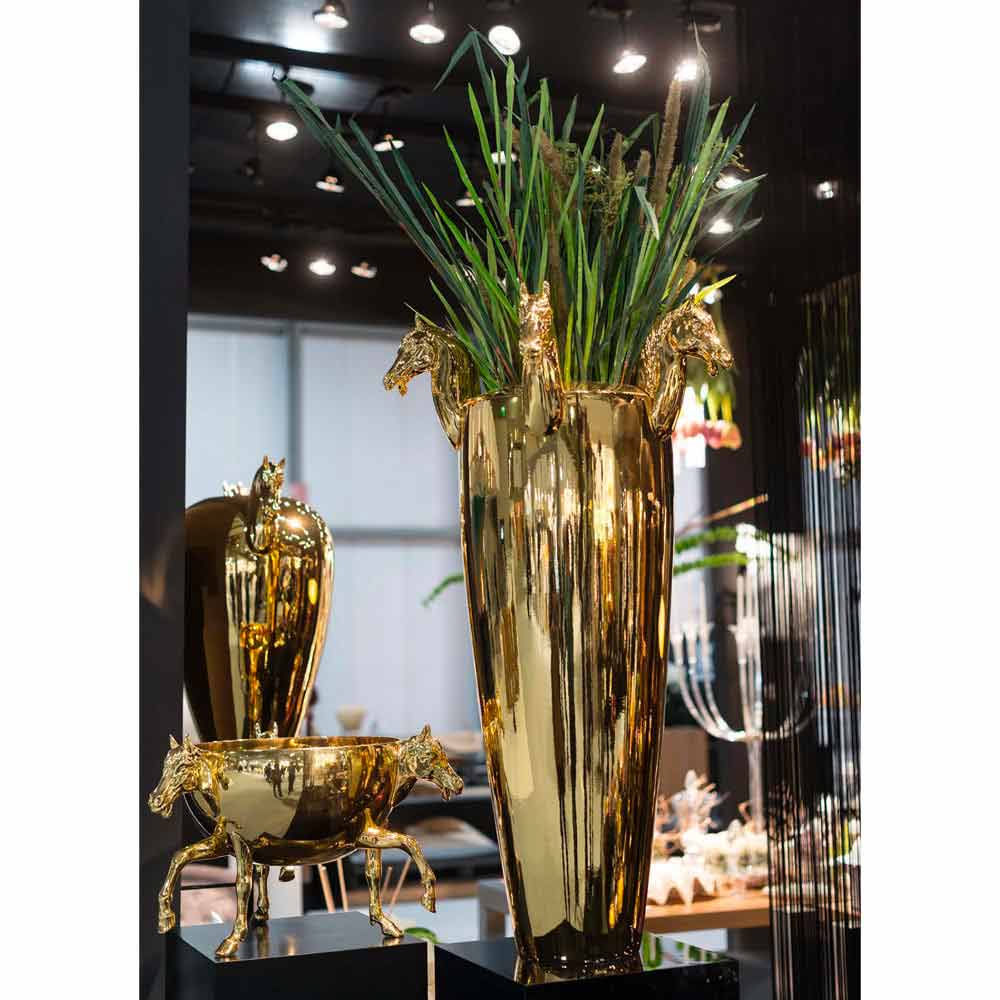 hantverkare som har varit experter inom branschen i generationer. Ett komplement med en väsentlig och elegant estetik berikad och gjord unik av de ursprungliga hästformade detaljerna placerade i den övre delen av vasen som understryker dess kreativa själ och gör den till en perfekt lösning för både klassiska stilmiljöer och modernare utrymmen där han skapar ett underbart spel med kontraster mellan olika stilar. Den