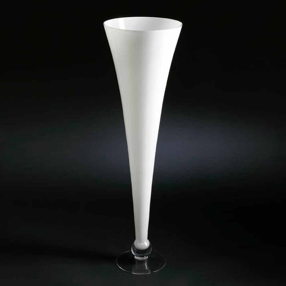 Hög dekorativ vas i vitt och transparent glas tillverkat i Italien.