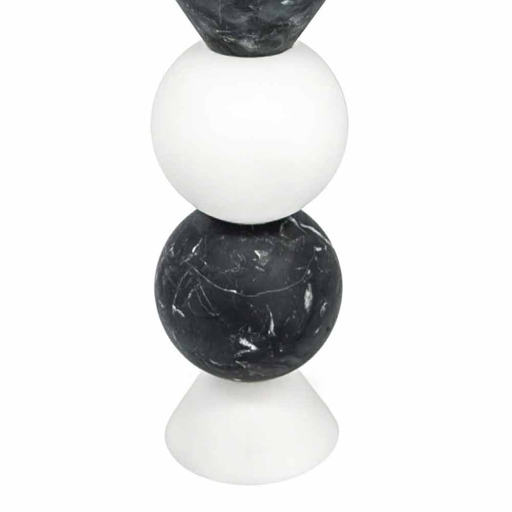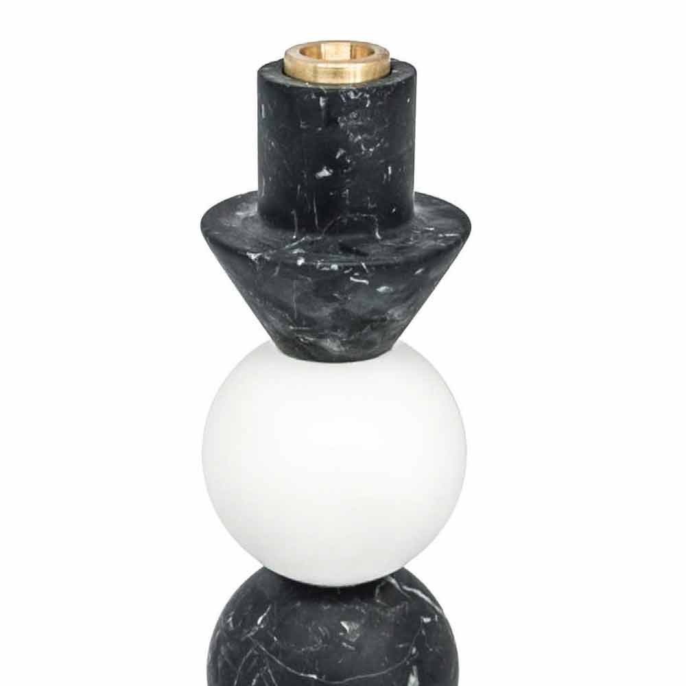 Handgjord ljusstake helt gjord av marmor och mässing av hög kvalitet . Det ska betraktas som ett unikt stycke eftersom varje marmorblock som används skiljer sig från de andra för vener och nyanser. Den vita marmorn kommer från Poggio Silvestre-stenbrottet, en källa till förstklassig marmor som klassificerats sedan förra seklet medan den svarta Marquinia-marmorn extraheras från spanska stenbrott.