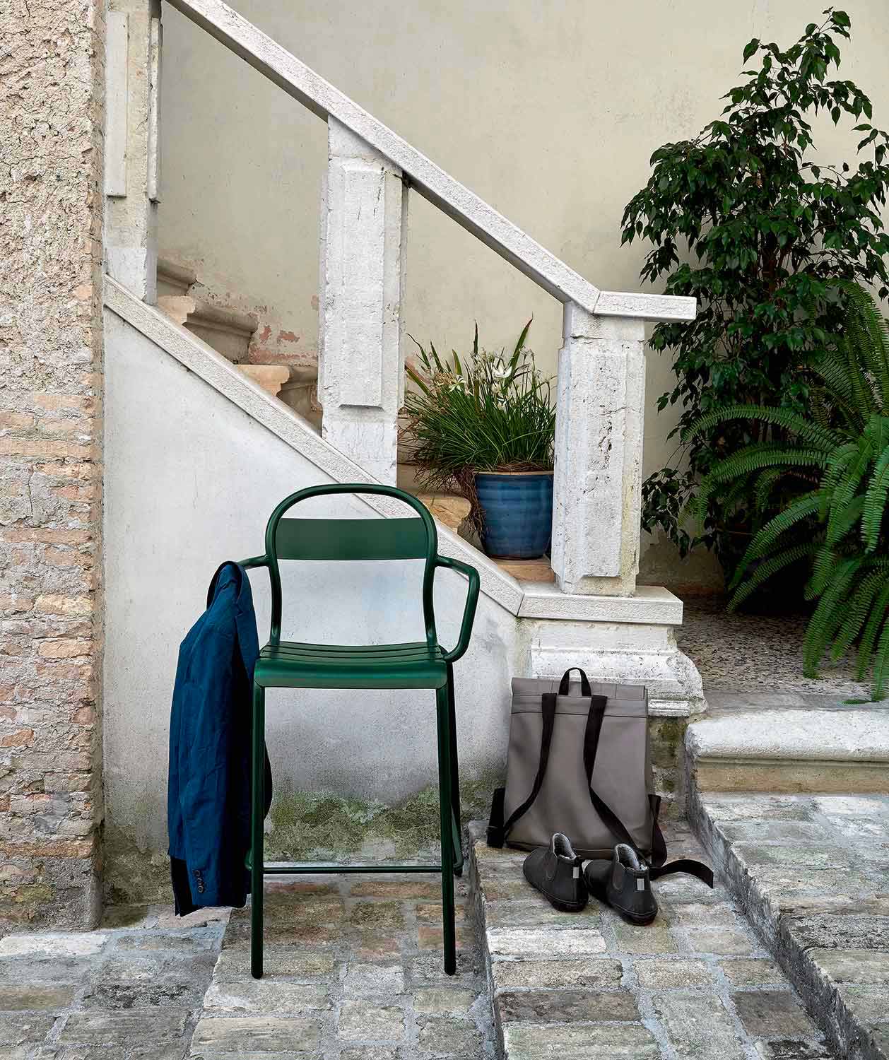Selima är en hög utomhuspall med en modern och elegant design som kännetecknas av en tidlös och mångsidig design. Pallen är helt gjord av aluminium, vilket gör den perfekt för användning i höga kök eller barer både ute och inne, för hushållsbruk och icke-hushållsbruk och är utrustad med armstöd för större komfort.
