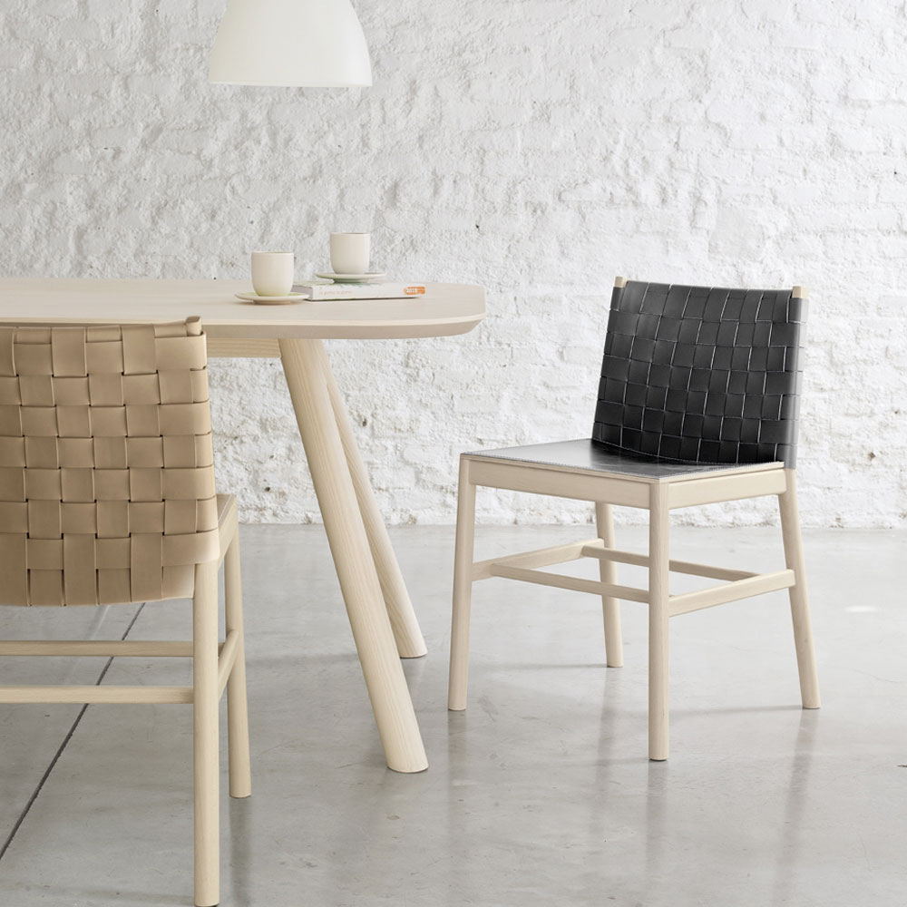 Idealisk stol för matsal eller kök tillverkad i Italien i bokträ med rygg och sits täckt av läder . Den harmoniska fusionen av dessa två material ger liv till en innovativ och samtida idé som kommer att tänka på ett mer traditionellt utseende moderniserat för att skapa något originellt och kreativt . Det vävda läderens ryggstöds särdrag representerar den verkliga styrkan i denna artikel, ger den sin starka eleganta personlighet och gör den till en perfekt stol både för moderna miljöer där den skapar en underbar harmoni men också för områden med mer klassisk inredning där lek och ha kul med olika stilar för en nyckfull atmosfär.