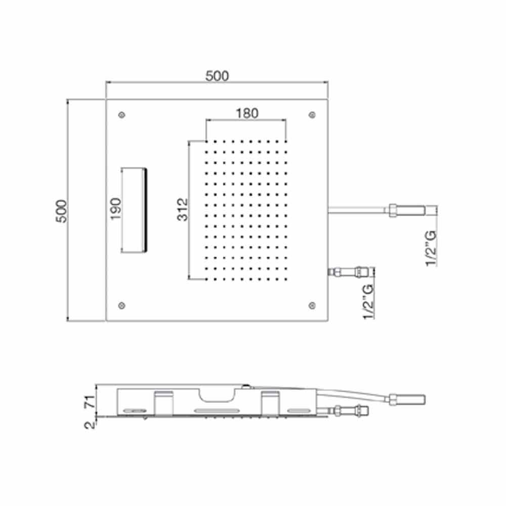Modernt fyrkantigt duschhuvud i rostfritt stål med dubbelstråle, Made in Italy kvalitetsprodukt.