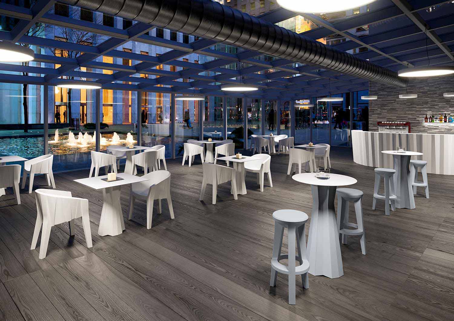 mattvita polyetenbaser som ger utmärkt stabilitet och hållfasthet tillsammans med motståndskraft mot värme, sol och stötar. Idealisk för att komplettera inredningen av miljöer med en modern och raffinerad design som behöver en touch av personlighet och stil.