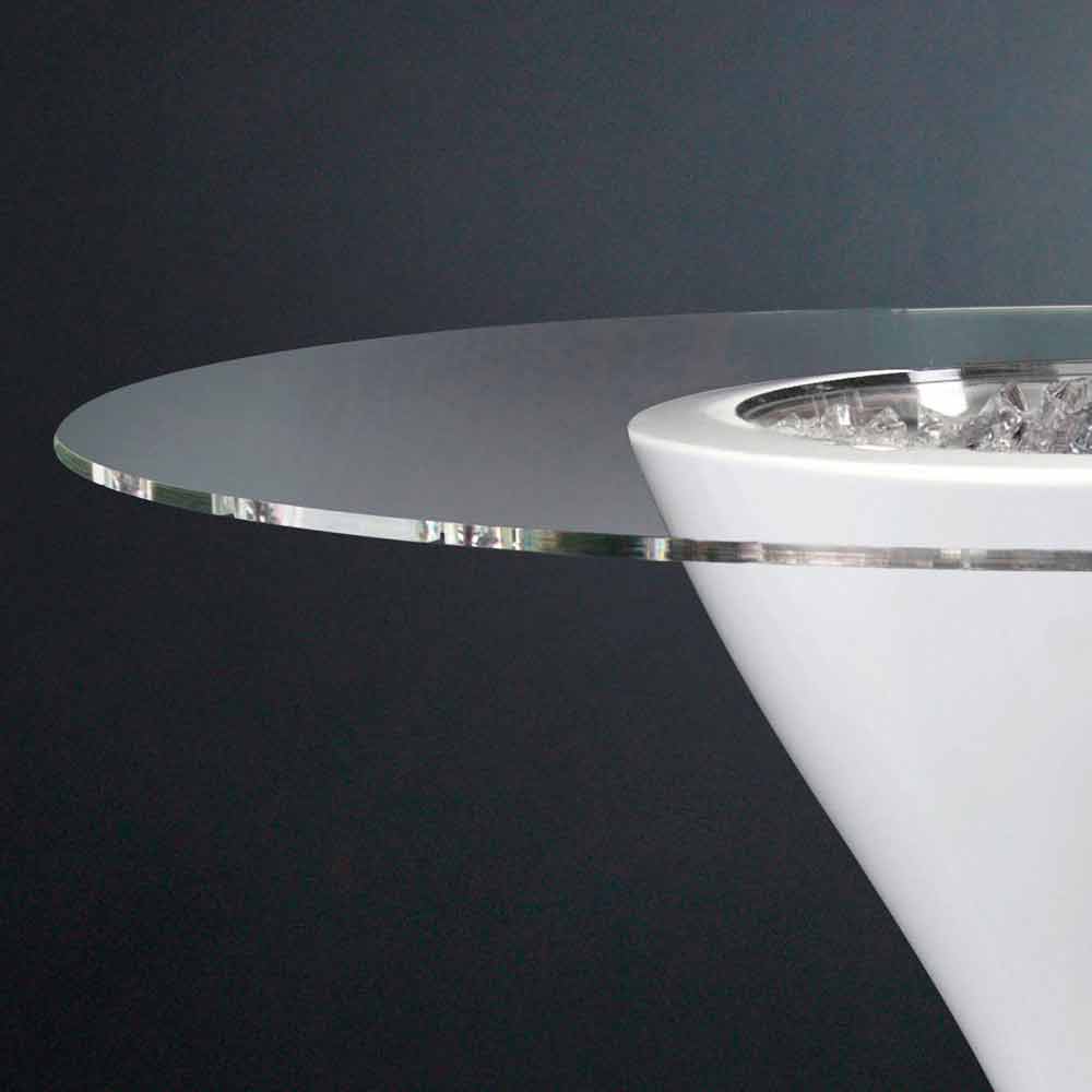 Högt runt soffbord med glasplatta och polyetenbotten Tillverkad i Italien, lyx.