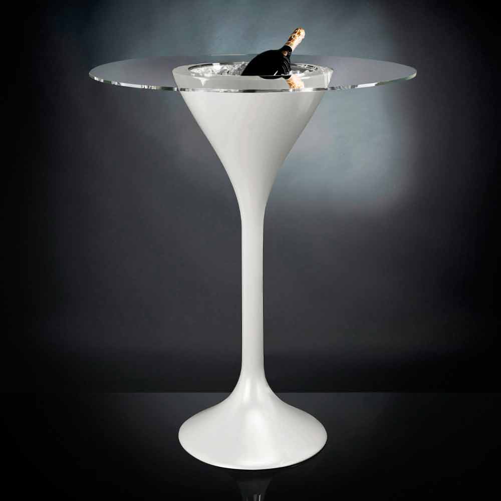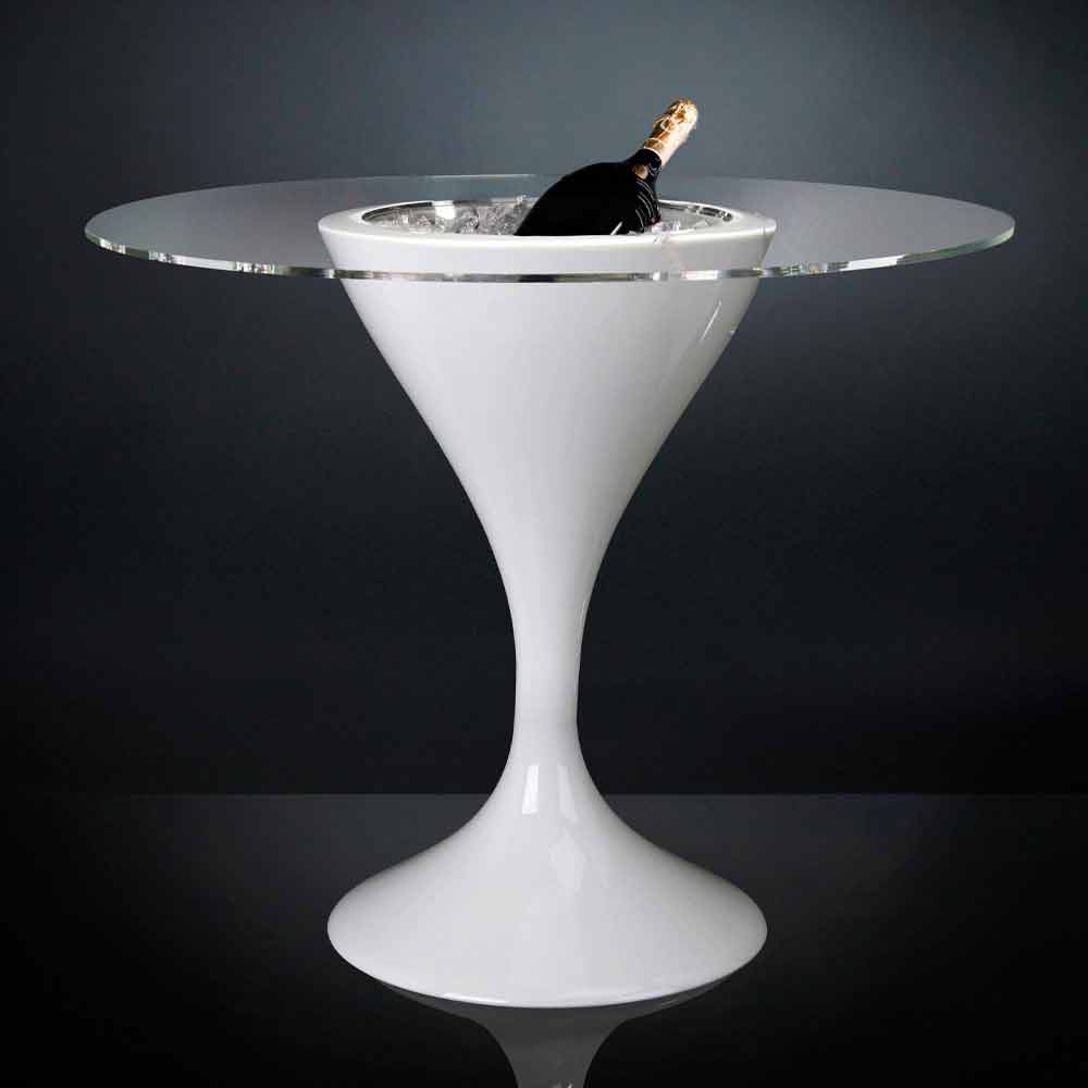 blank vit polyetenbas . Det speciella med detta moderna och excentriska högbord är närvaron av en