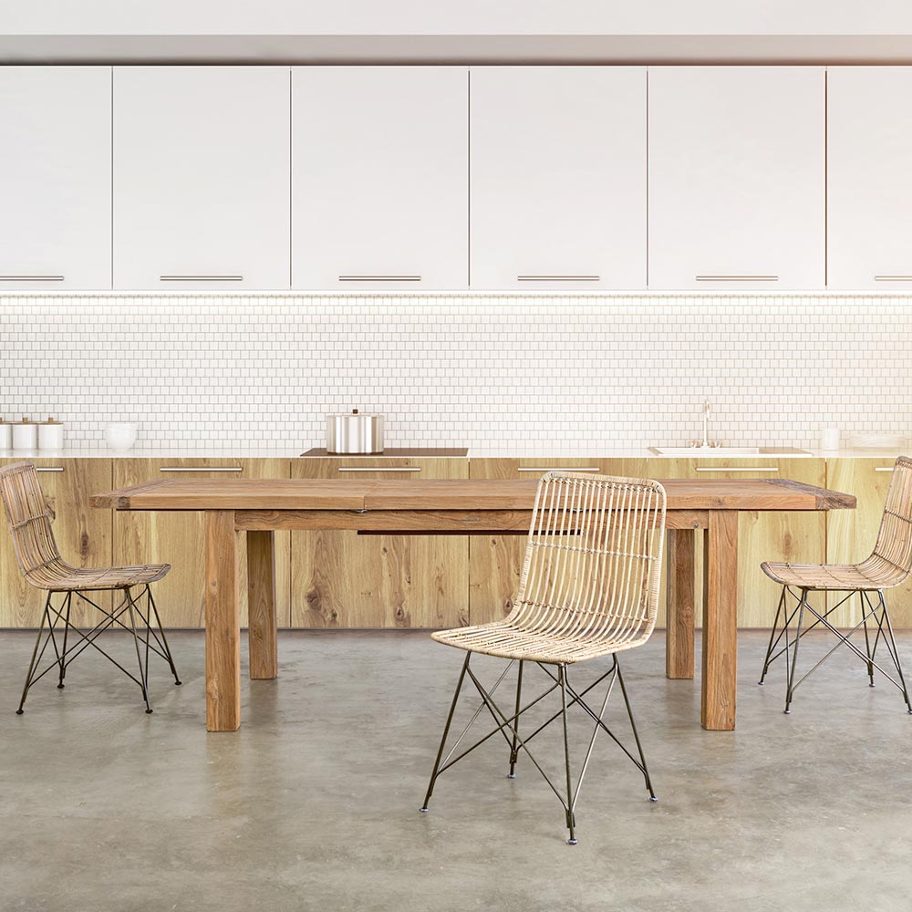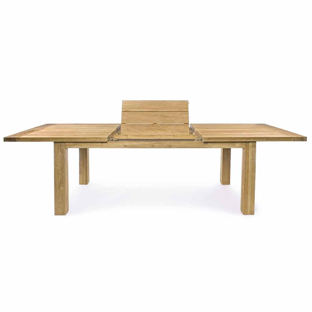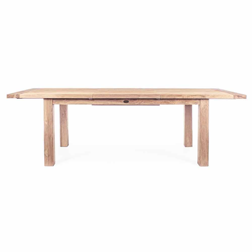 Rektangulärt utdragbart trädgårdsbord i naturligt återvunnet teakträ, tillgängligt i två storlekar.