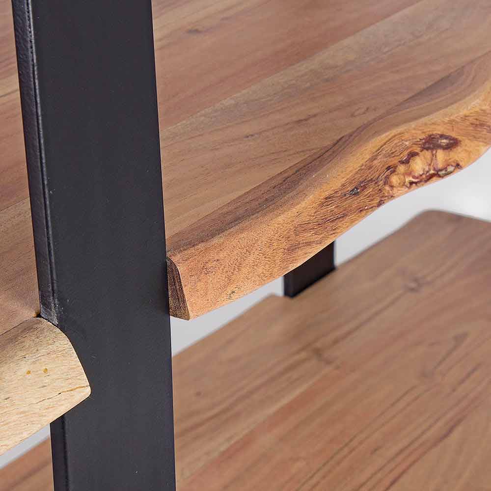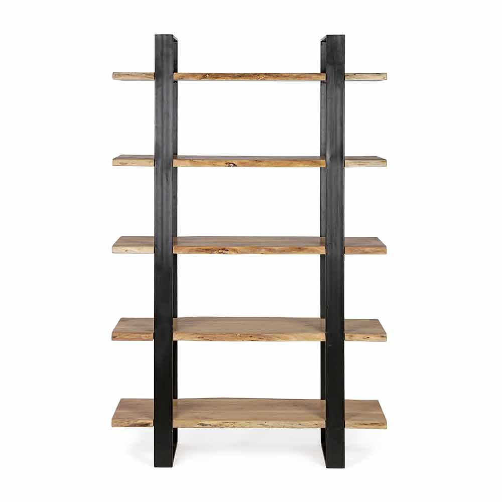 Golvbokhylla i modern design i målat stål och akaciaträ.