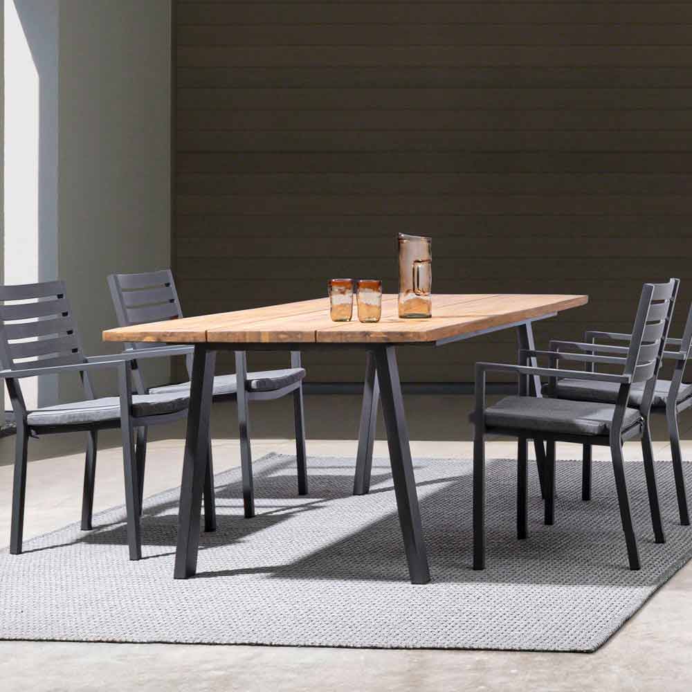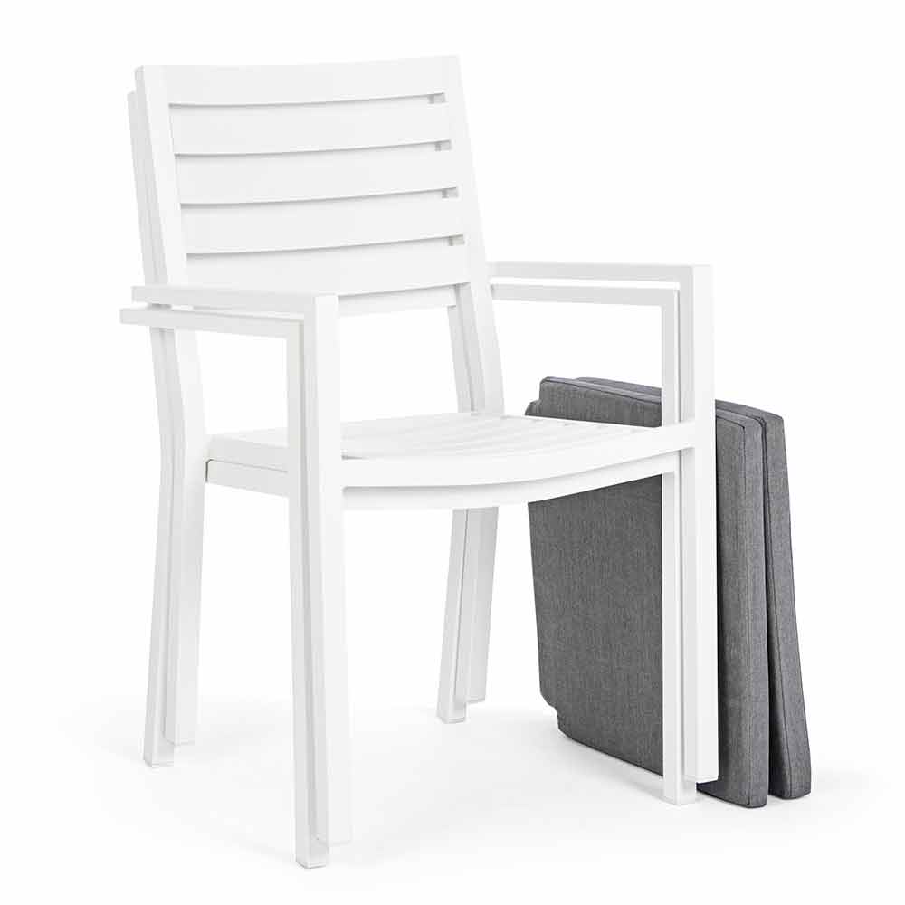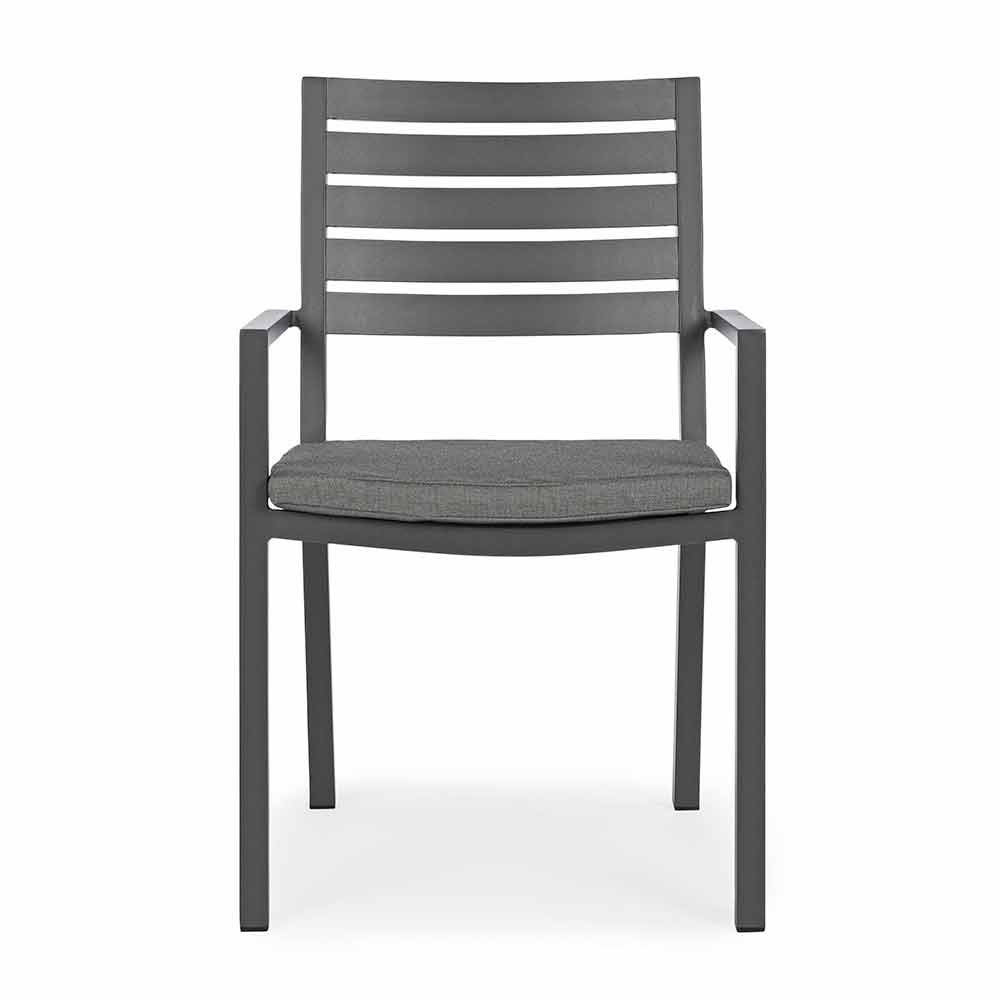 Aluminiumram , pulverlackerad (polyester), avtagbara kuddar med Spun Poly-tyg (polyester). Stapelbar .