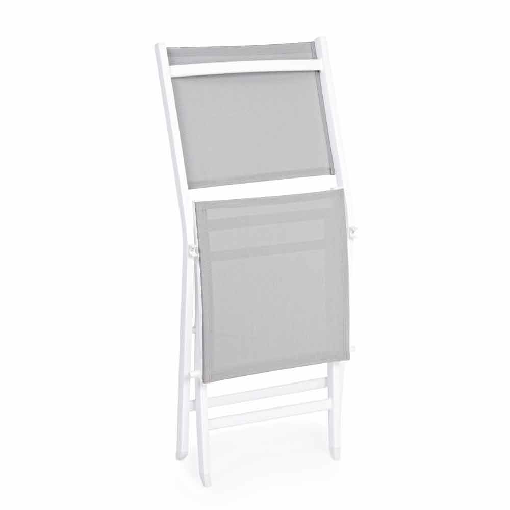 Stapelbar trädgårdsstol i aluminium och textilene, vit eller grå - Floraforma