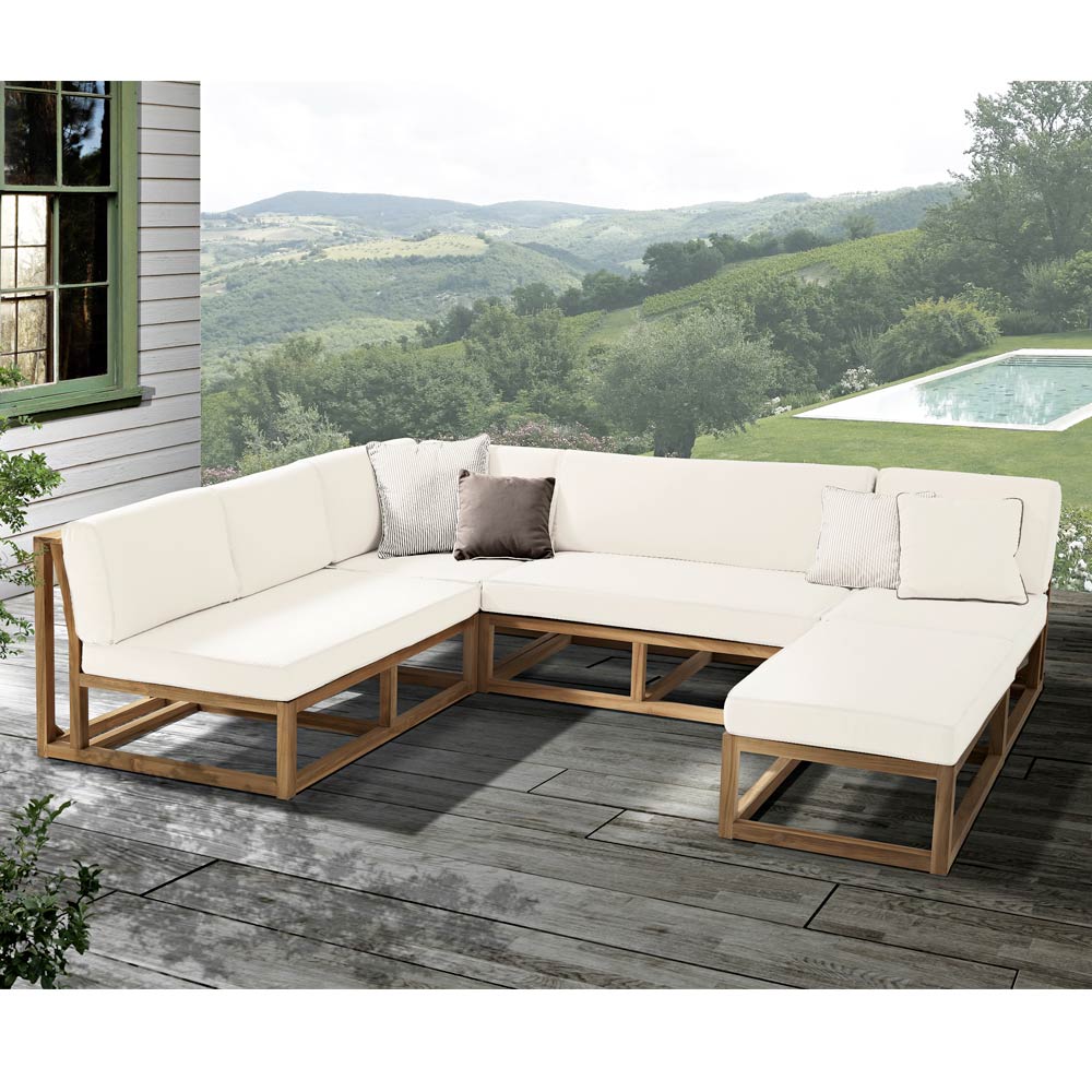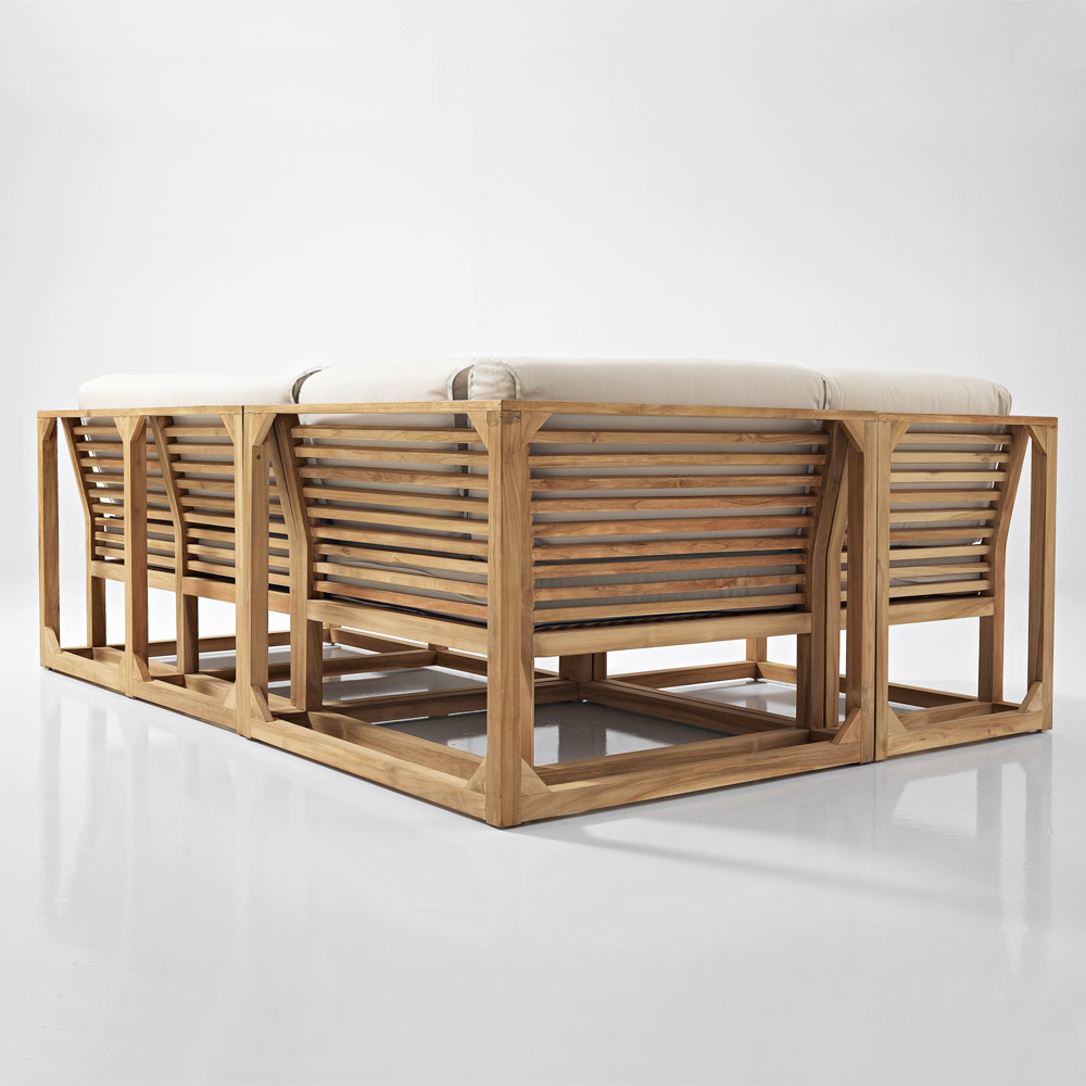 teakträ från kontrollerade och hållbara skogar (INDONESIANLEGALWOOD). Teak klassificeras som det mest värdefulla träslag som finns för utomhusmöbler. Det är extremt hållbart, stabilt, motståndskraftigt mot atmosfäriska agenser, svampar, parasiter och insekter. Det innehåller höga halter av naturliga oljor som gör det motståndskraftigt och begränsar absorptionen av fukt. Med tiden tenderar teakmöbler som utsätts för sol, regn, luftfuktighet etc. i allmänhet att bli silvergrå i färgen: detta beror på en ytoxidationsprocess som naturligt skyddar träet. Denna process är uteslutande estetisk och skadar inte träets struktur eller kvalitet. Att det bildas olja på ytan av teakmöbler är en naturlig process: oljan kan komma ut under de första månaderna, mer eller mindre konsekvent beroende på i vilken miljö möblerna placeras. De naturliga oljor som finns i teak är det som gör det till det bästa träslaget för utemöbler.