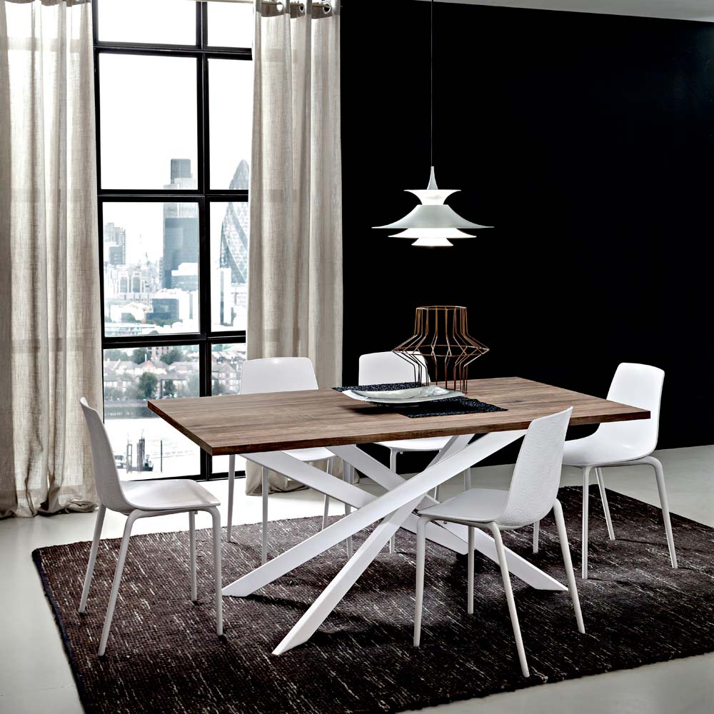 exklusiv inredningslösning som kan karakterisera vilken miljö som helst tack vare den imponerande strukturen av träet och dess unika ådring och den moderna touchen av den målade metallen.