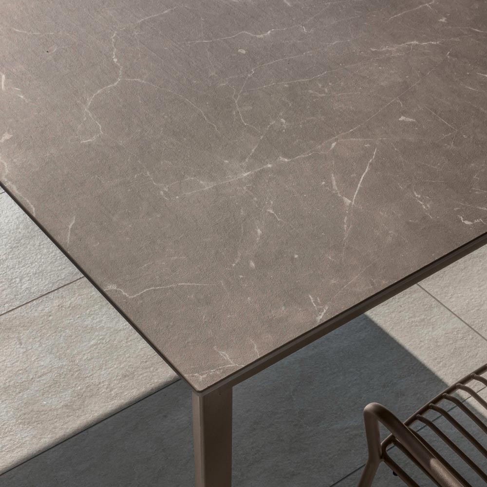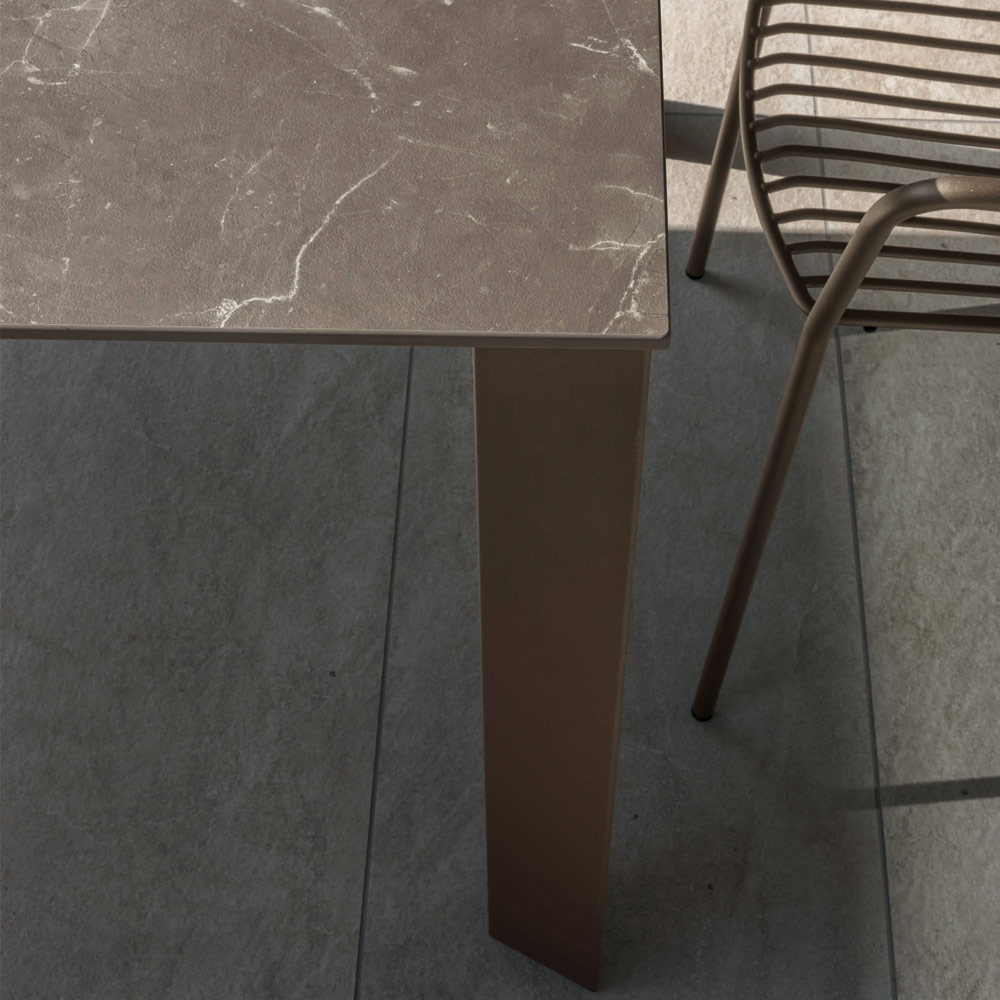 Utomhusmatbord med hpl-skiva och metallunderrede Tillverkat i Italien.