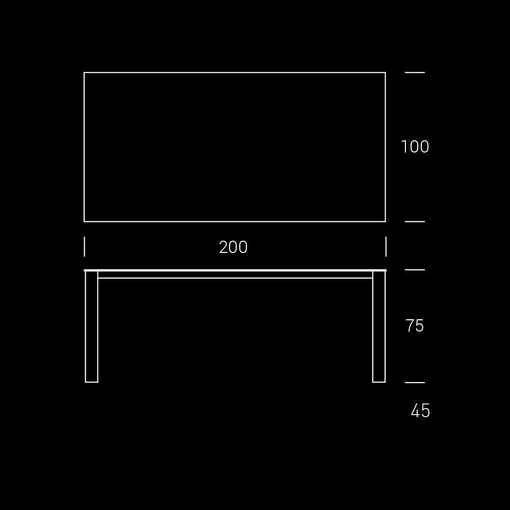 - L 200 x D 100 x H 75cm.