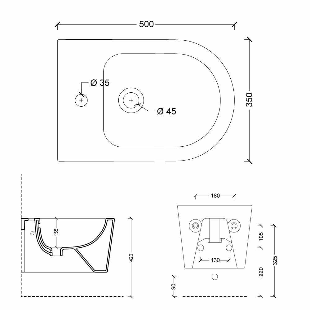 Modern vägghängd bidé i keramik Shine Square 50x35cm, tillverkad i Italien