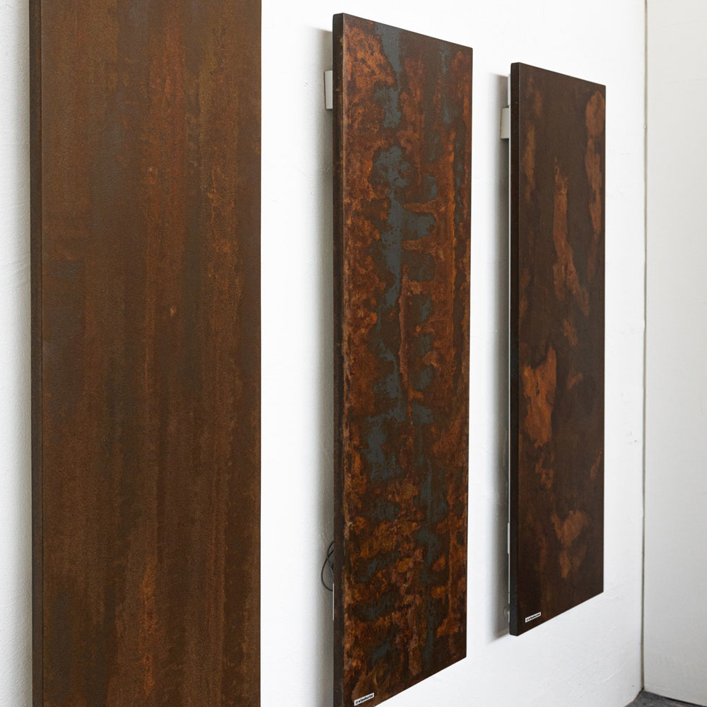 Efter en andra nebuliseringsfas för att återaktivera reaktionen igen, följer slutligen en behandling baserad på en speciell färg för att skydda radiatorn. Det slutliga resultatet som kommer fram från bearbetningsfaserna är därför en yta med den typiska icke-homogena färgen av corten som kombinerar ljuset och mörkt av rost för ett originellt och harmoniskt färgspel.