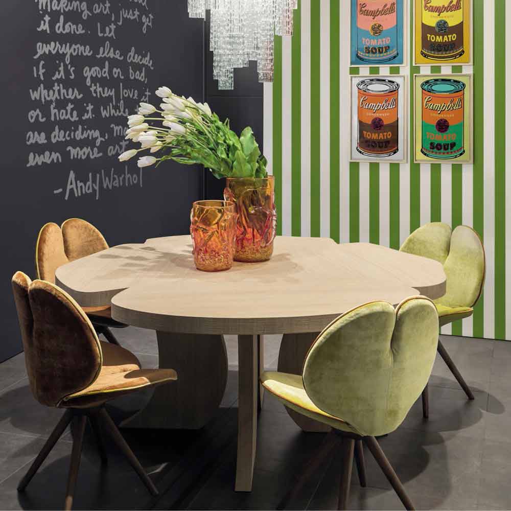 Andy är en hållbar bord, enkel, elegant, original design och modern formad blomma, som lämpar sig för alla typer av möbler. Kännetecknas av 'original blomma form ger ett inslag av kreativitet i alla miljöer där den är placerad. Table realiseras genom snickare helt i Italien, med den unika designen och oefterhärmliga, dess väsentlig egenskap inkapslad i sin våning i ek i sin helhet borstad vax finish, från den ursprungliga blomma. Dess bas är sammansatt av fyra element formade kurvan i ek. Andy ger sin unika design. Idealisk för att sätta upp matsalar på bröllop och evenemang.