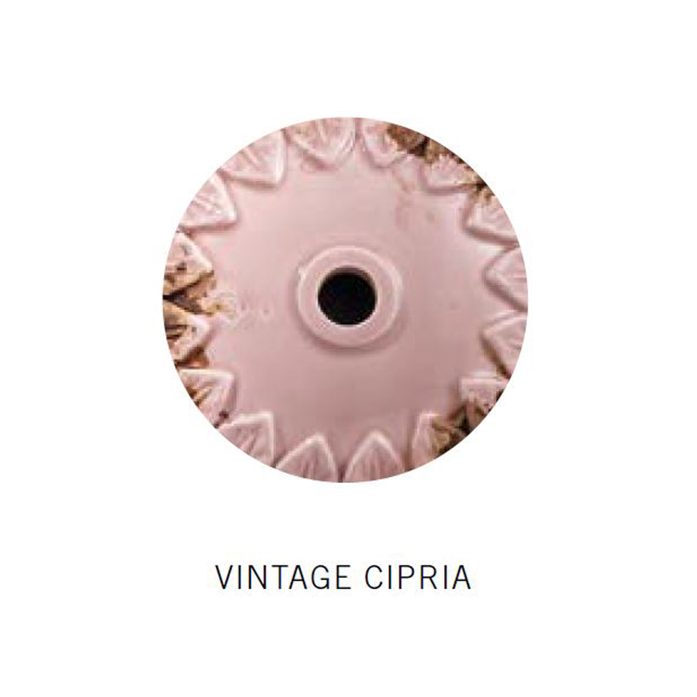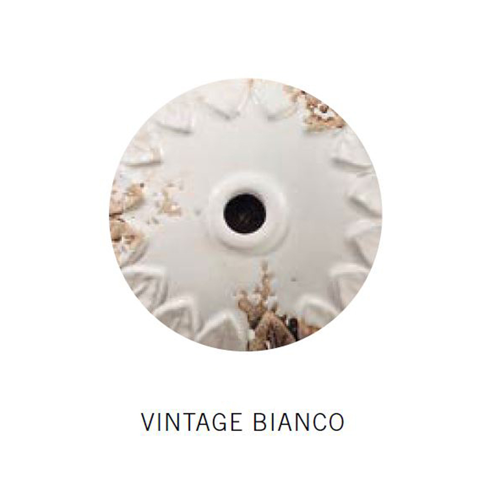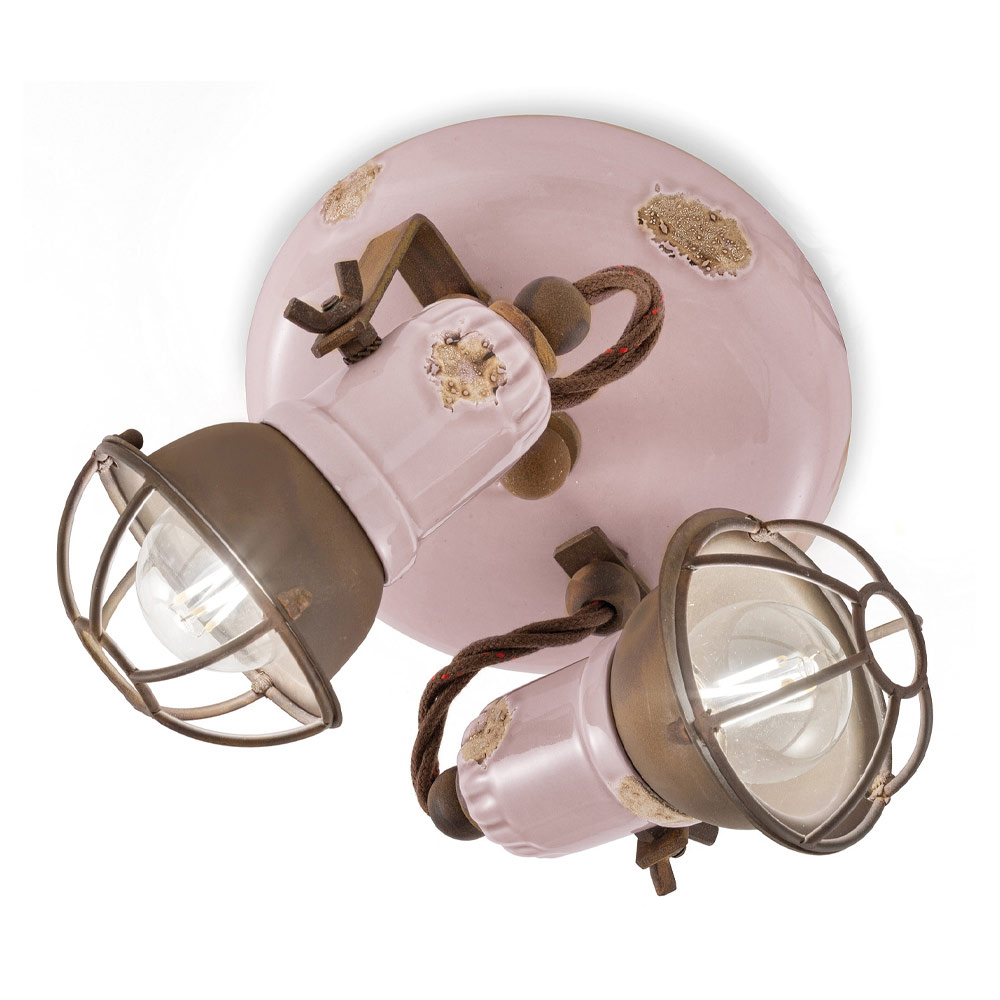 Denna taklampa kännetecknas av de två riktade strålkastarna och är helt handgjord i metall och keramik , för att lyfta fram hantverkarnas skicklighet och manuella färdigheter i ett hantverk med uppmärksamhet på de minsta detaljerna. Designen med en antik smak i industriell stil är därmed unik och idealisk för intima atmosfärer med mjukt ljus i de mest raffinerade miljöer. De antika detaljerna i oxiderad metall och de olika vintagefärgerna för trompe-l'oeil-effekten keramikde ger varje produkt en annan personlighet.
