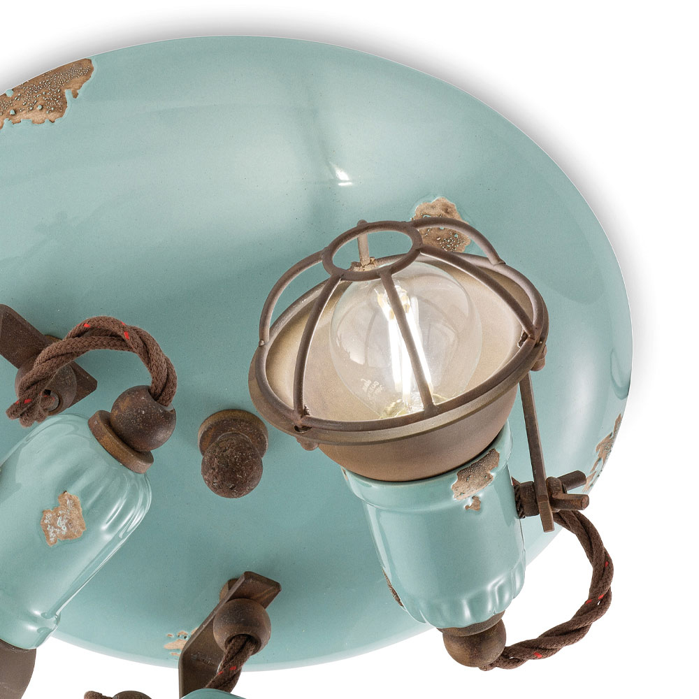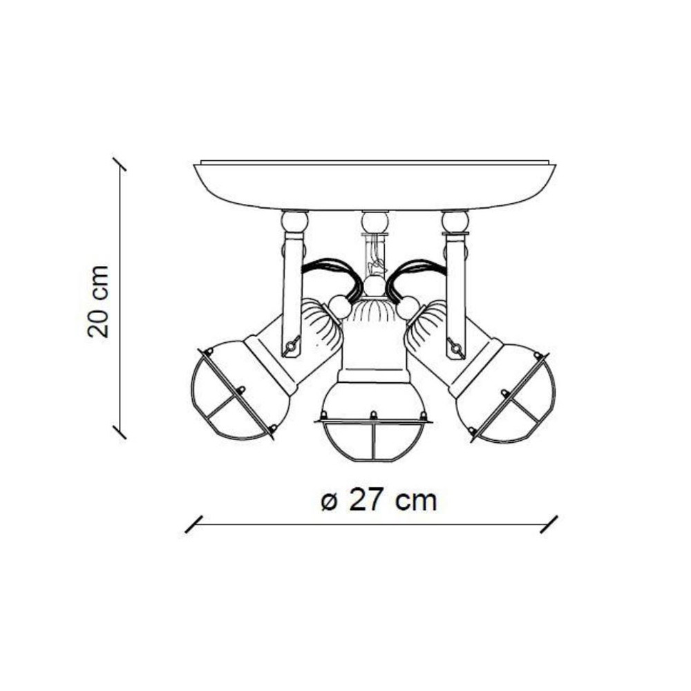 Taklampa 3 spotlights i industriell design av keramik och järn tillverkad i Italien av Ferroluce.