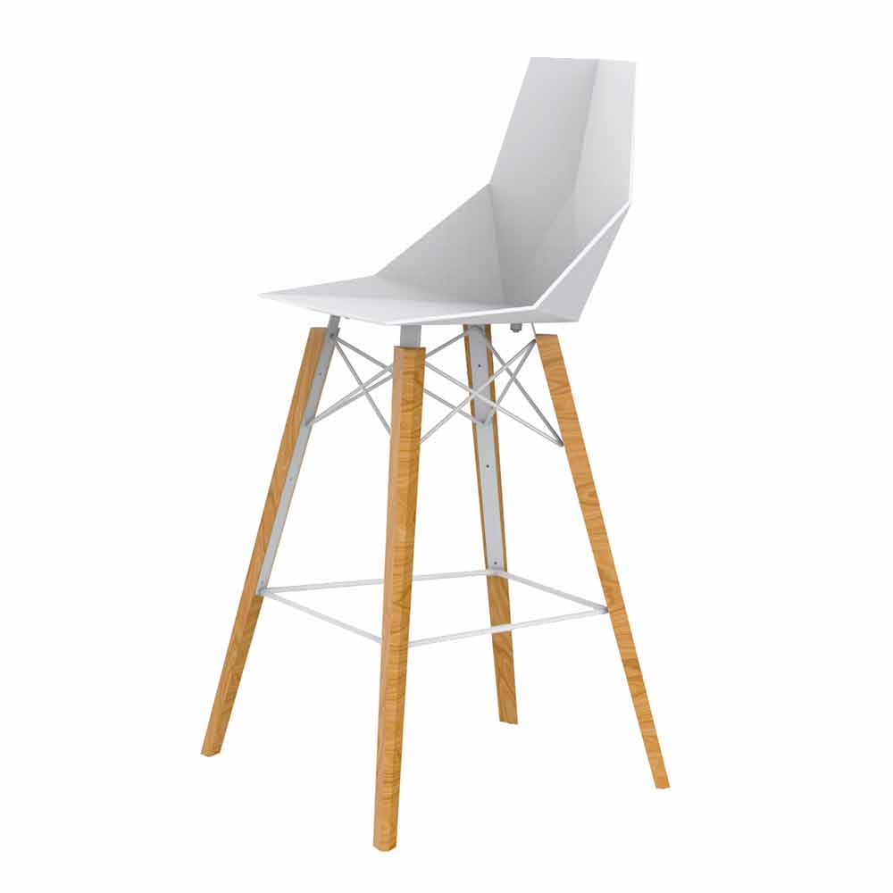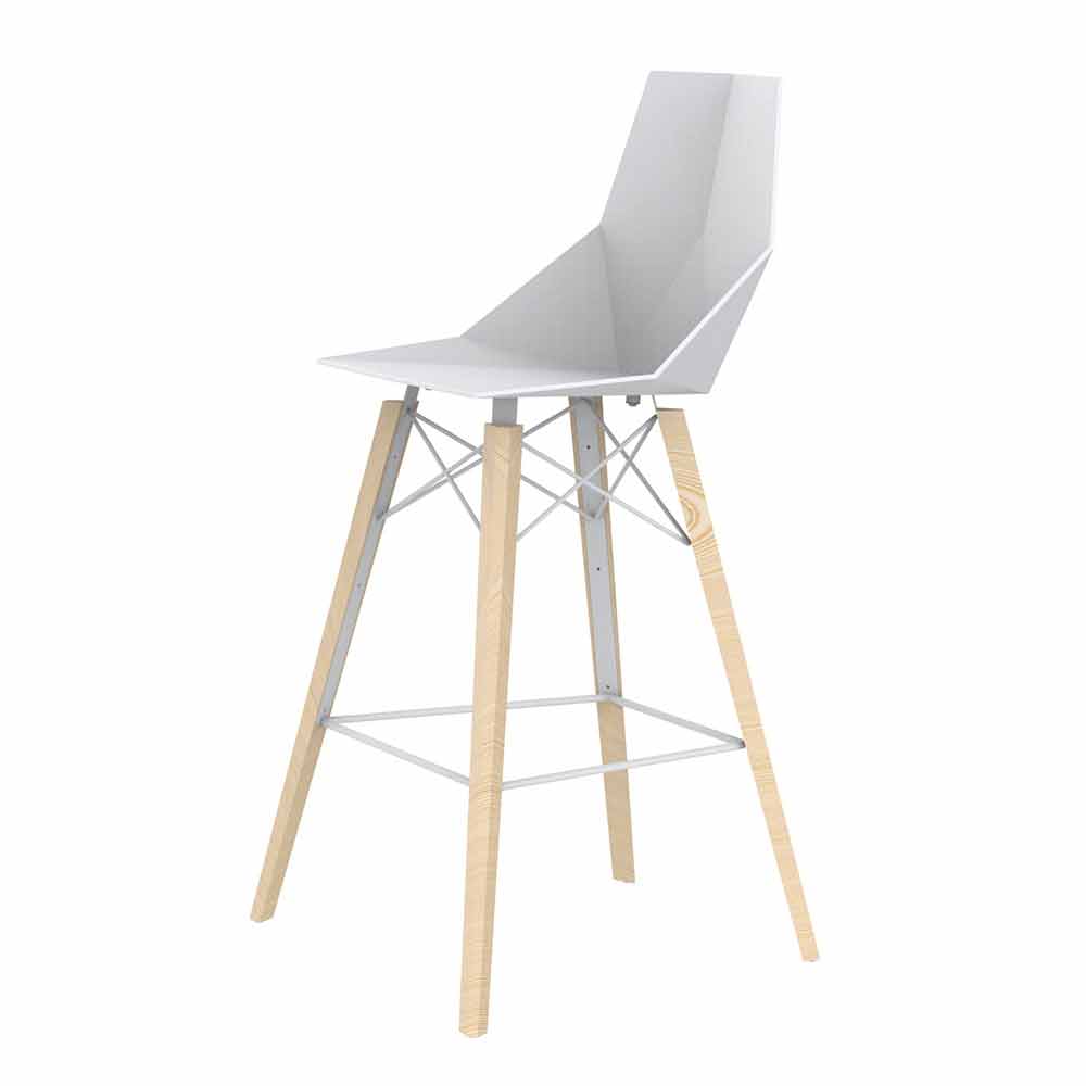 Barstol med struktur i ask och sits och rygg i polypropen i olika färger.