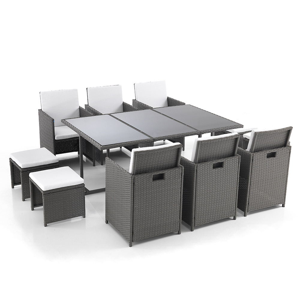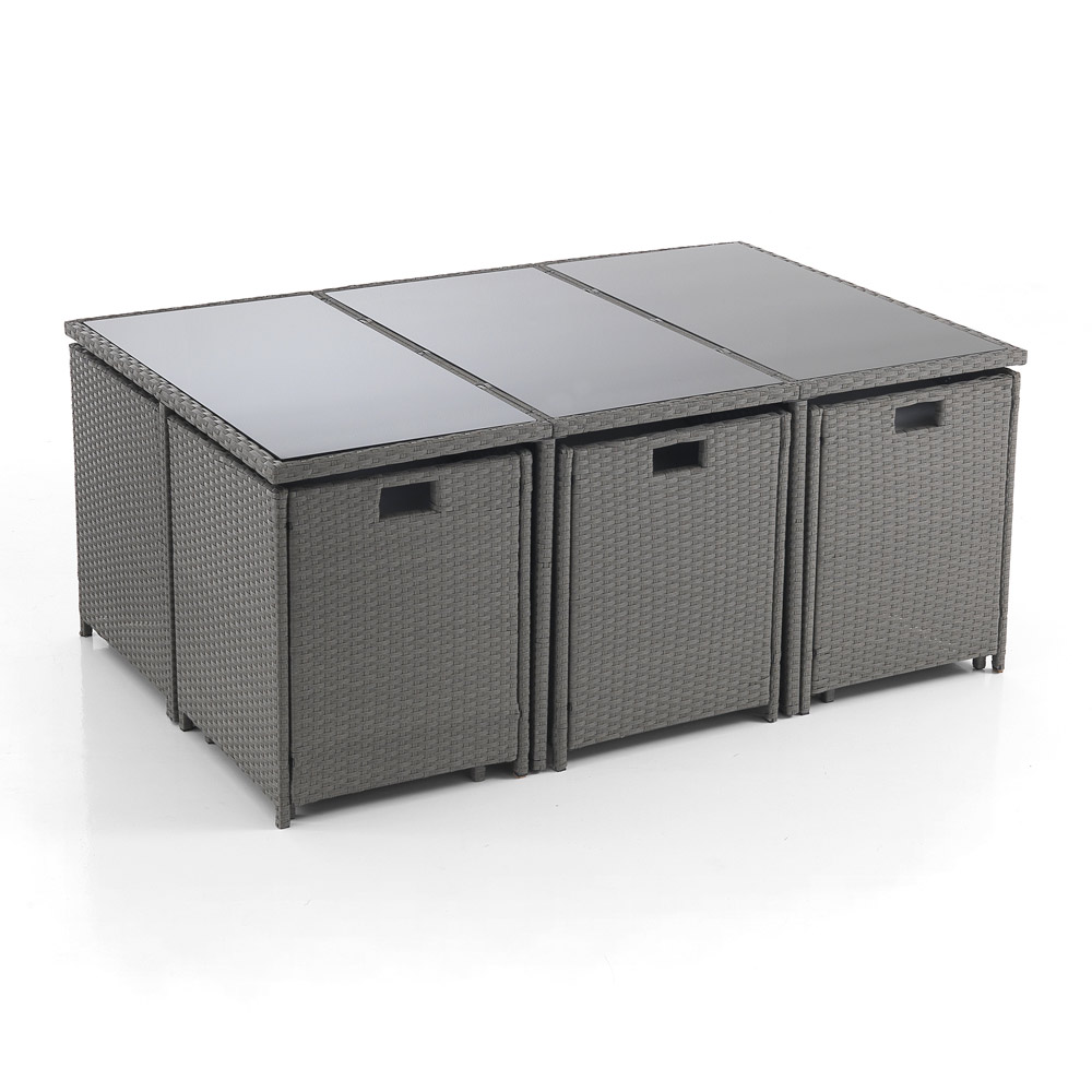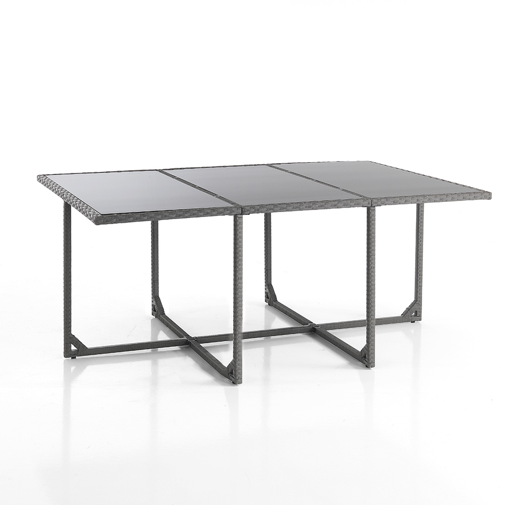 Detta modulära trädgårdsset är essensen av mångsidighet och utrymmeseffektivitet . Designad för att passa alla utomhusmiljöer, innehåller setet ett stilfullt bord och matchande sittplatser som kombineras till ett kompakt, stilrent arrangemang när det inte används och förvandlas till en modern designskulptur.