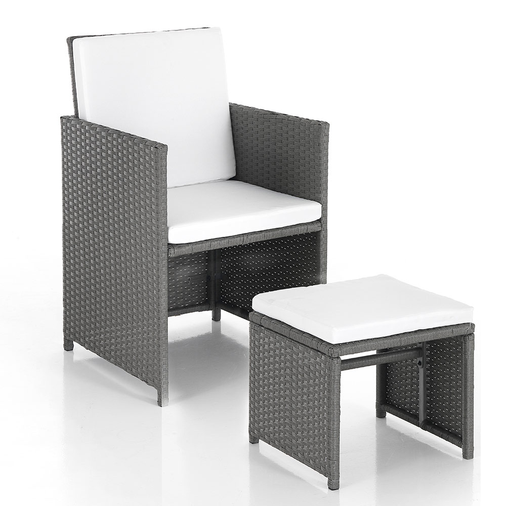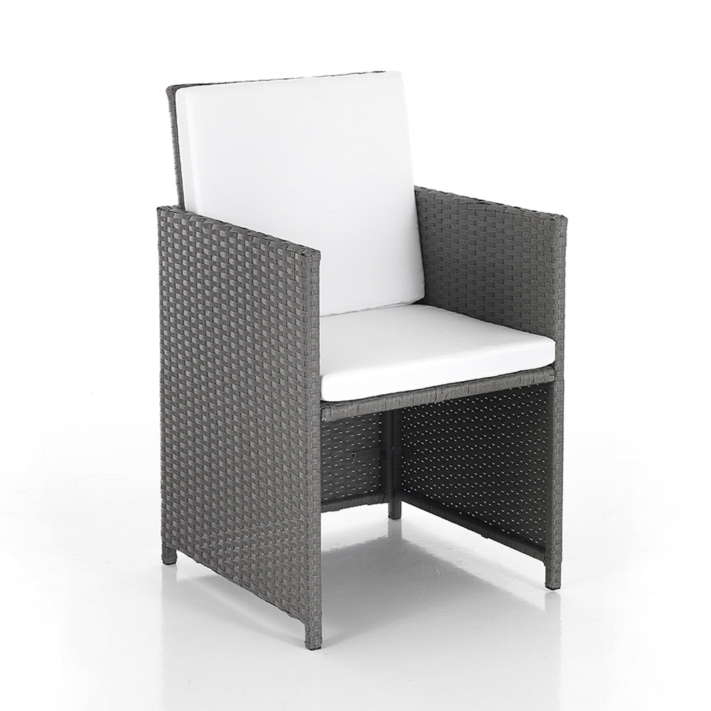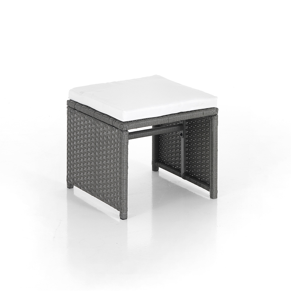 Den vävda finishen ger setet en raffinerad och hållbar look, perfekt för att underhålla gäster med stil eller njuta av avkopplande kvällar under stjärnorna. Kuddarna erbjuder en behaglig kontrast som inbjuder till långa perioder av avkoppling och utomhussamtal.