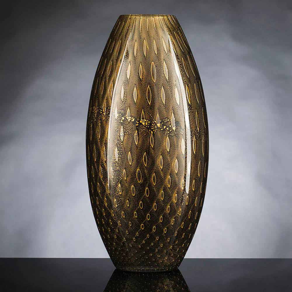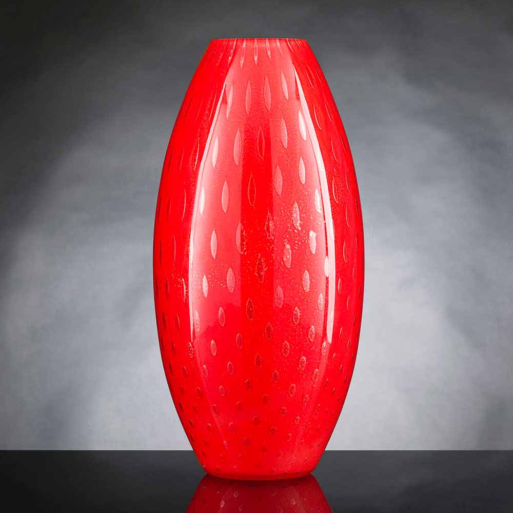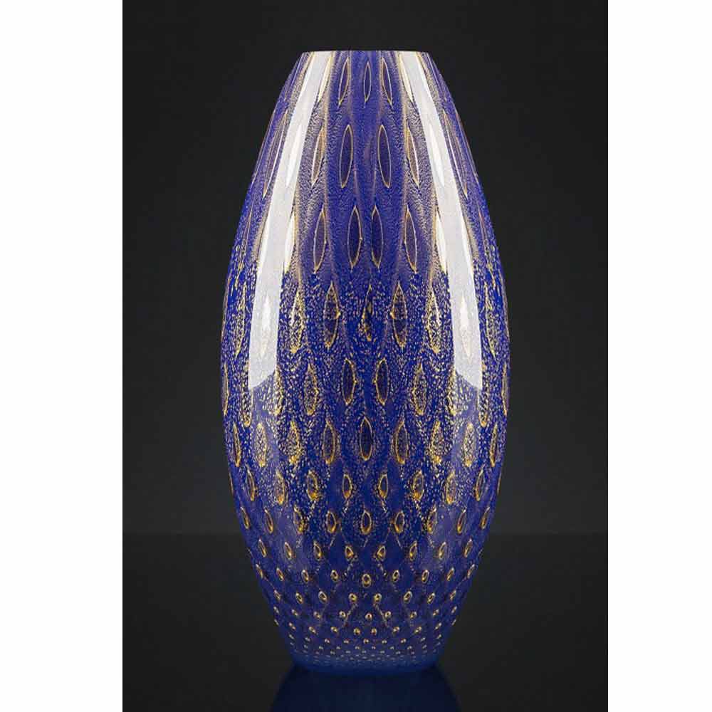 Modern dekorativ vas i färgat Murano-blåst glas Tillverkad i Italien.