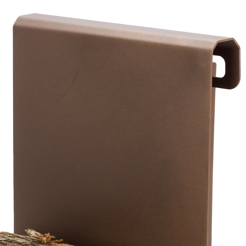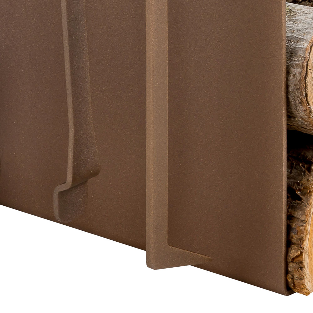 Logghållare i modern design i brunt stål med stenbockad dekor med tillbehör, tillverkad i Italien.
