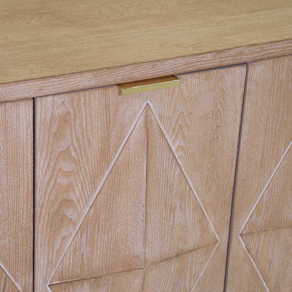 Granben ger skåpet en solid struktur, berikad av en ren och modern design. Dörrarna, utsmyckade med ett graverat geometriskt mönster, ger en touch av originalitet och förfining.