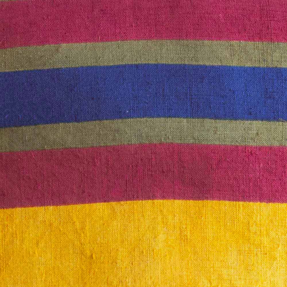 - Yttre tyg : 100% gammal hampduk, handvävd vävstol. Det typiska inslaget i detta forntida och värdefulla tyg är strukturens oregelbundenhet.