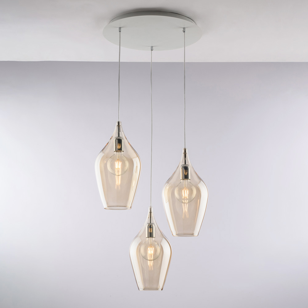 Denna pendellampa finns i transparent , bärnstensfärgad eller grå finish och låter dig anpassa ditt utrymme efter önskad stil: ljus och luftig i den transparenta versionen, varm och omslutande i bärnstensfärgad, modern och elegant i grått. Den är idealisk för vardagsrum , matsalar , köksöar , öppna ytor och designade kontorsmiljöer .