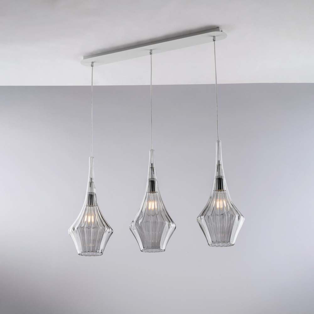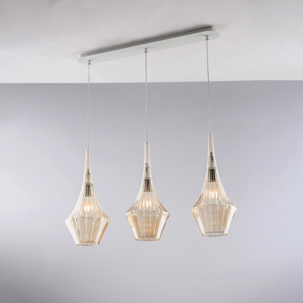 Denna skena finns i transparent , bärnstensfärgad eller grå finish och låter dig anpassa stilen på ditt utrymme: ljus och lätt i den transparenta versionen, varm och välkomnande i bärnstensfärgad, modern och elegant i grå. Den är idealisk för köksöar , matbord , bänkskivor , öppna utrymmen och designade kontorsmiljöer .