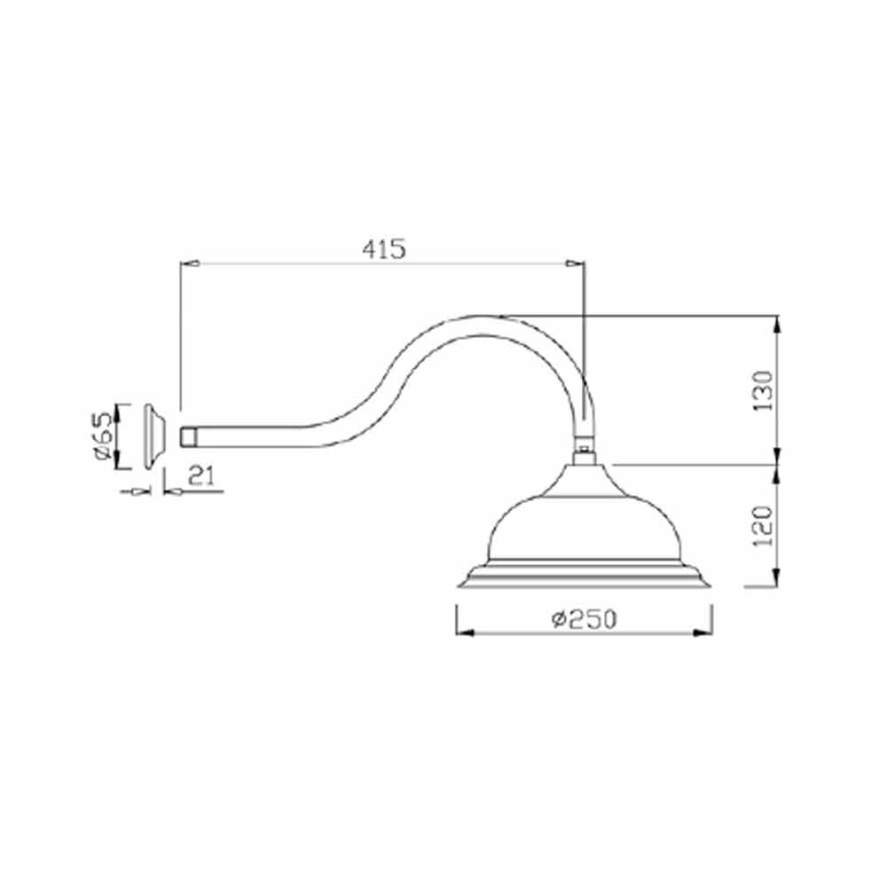 - välvd duscharm i mässing;