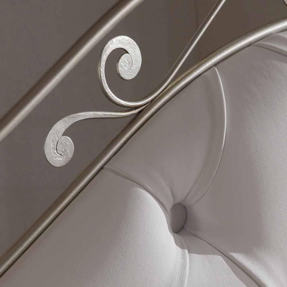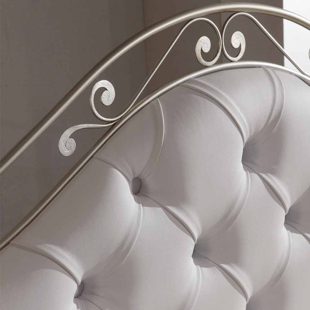 Gracie är berikad med en sänggavel i vadderad vadderad, täckt av konstläder i den känsliga vit finish som förenar delikatess av silverstrukturen.