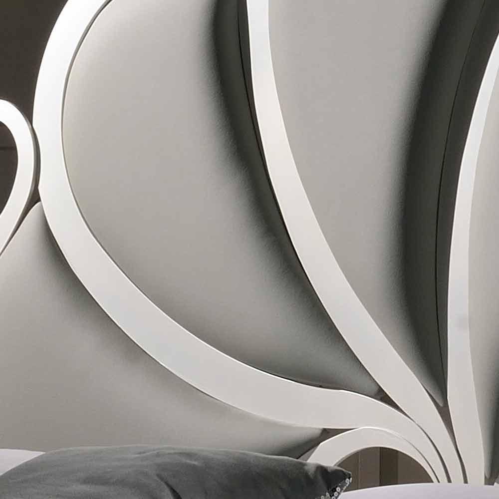 En annan egenhet av denna bädd gäller alltid sin sänggavel, berikas av fem kronblad vadderad och omfattas i skinnimitation gray ash.