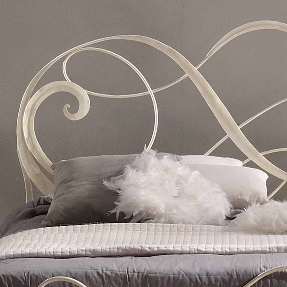 Denna bed är handgjorda smidesjärn i grädde finish.