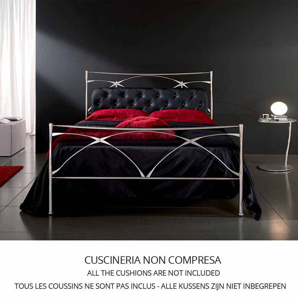 Smidessängen i varianten DUBBEL SÄNGGAVEL MED SÄNGKAMMAR kräver införande av en 160 X 190 sängbotten som måste appliceras vilande på sängramen. Om det finns särskilda behov relaterade till den fysiska formen, kombinationen med befintliga sängbottnar eller helt enkelt till estetik, kan denna modell, tack vare vår hantverksproduktivitet, modifieras i höjd, längd och bredd.