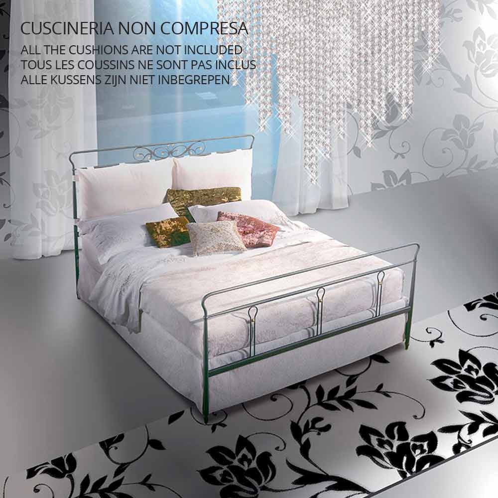 Smidesjärnssängen i varianten DUBBEL Sänggavel med fotbräda OCH SIDLEMOR inkluderar införandet av en 160 X 190 sängbotten som antingen kan stödjas av sina egna ben eller appliceras för att vila på sängramen. Denna andra lösning rekommenderas av företaget eftersom den underlättar flytt- och städning. Hur som helst kan beslutet om hur sängbottnen ska appliceras tas direkt vid monteringstillfället och är reversibelt eftersom stödfästena ingår i sängens utrustning. Om det finns särskilda behov relaterade till fysisk form, till kombinationen med befintliga sängbottnar eller helt enkelt till estetik, kan denna modell, tack vare vår hantverksproduktivitet, modifieras i höjd, längd och bredd.