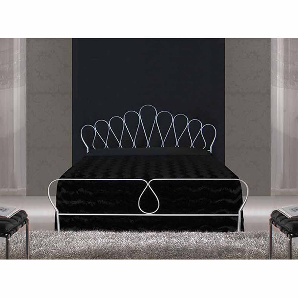 Smidesjärnssängen i varianten DUBBEL SÄNGGAVEL MED FOTBRANDA OCH BEHÅLLARE inkluderar en lamellbotten som rymmer en madrass på 160 x 190 cm. Basen vi levererar har ett speciellt madrasshållningssystem som gör att den även kan rymma en 190 cm lång madrass. Om det finns särskilda estetiska behov kan denna modell, tack vare vår hantverksproduktivitet, modifieras i höjdled. Behållaren är helt gjord av metall och kan målas i valfri färg. Att ha en metallbehållare garanterar otaliga fördelar för vår säng, inklusive soliditet, enkel rengöring och större kapacitet. Behållaren kan i alla fall kombineras med en textilkappa. Denna version med fotbräda kan till exempel endast göras tack vare metallstrukturen i behållaren, en mycket välkommen kombination eftersom den låter dig kombinera klassicismen hos en komplett säng med bekvämligheten att använda förvaringsutrymmet.