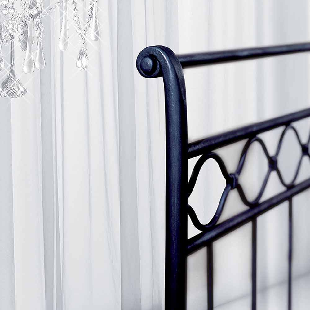 Smidesjärn säng i varianten SINGLE HEAD MED SIDOBAND fotbrädan Det innebär införandet av ett nätverk från 85 X 190, som kan vara antingen stödjas av sina ben, är det tillämpas vilar på sängstruktur. Denna andra lösning rekommenderas av företaget eftersom det underlättar förskjutnings och rengöringsoperationer. I varje fall kan beslut om hur man tillämpar nätverkets tas direkt vid tidpunkten för montering och är reversibel genom att stödfästen ingår i sängen utrustningen. Om det fanns några särskilda krav i samband med den fysiska strukturen, kombinationen med nätverk redan har eller helt enkelt estetik, den här modellen, kan tack vare vår hantverkare produktivitet ändras i höjd, total längd och bredd.