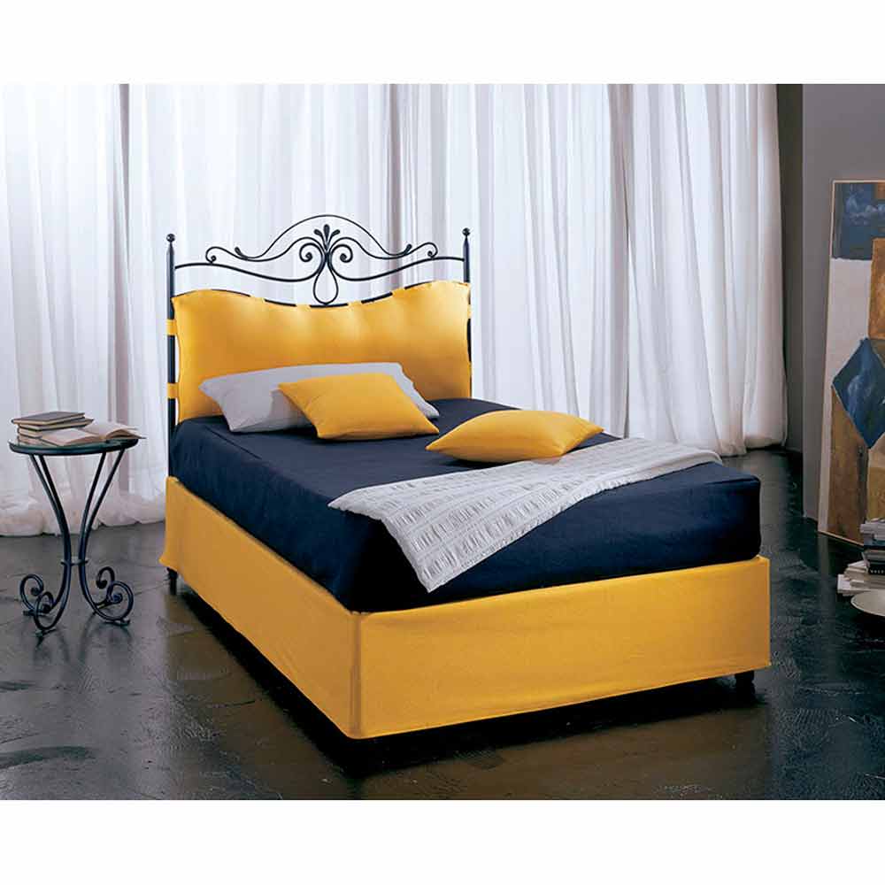 Den smidesjärn säng i CM variant. 120 HEAD MED höljet inkluderar spjälade basen som kan 'rymma en madrass 120 X 195 cm. Det nätverk som har ett speciellt tillförselsystem av fast madrass som gör att den också montera en lång cm madrass. 190.In om det fanns några särskilda krav i fråga om estetik, den här modellen, tack vare vår hantverkare produktivitet kan ändras i höjd. Behållaren är helt gjord av metall och kan målas för att någon färg. Med metallbehållaren ger många fördelar för vår säng inklusive robusthet, enkel rengöring och större kapacitet. Behållaren är i varje fall kombineras med ett textil kappa