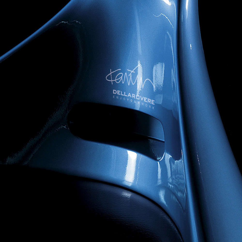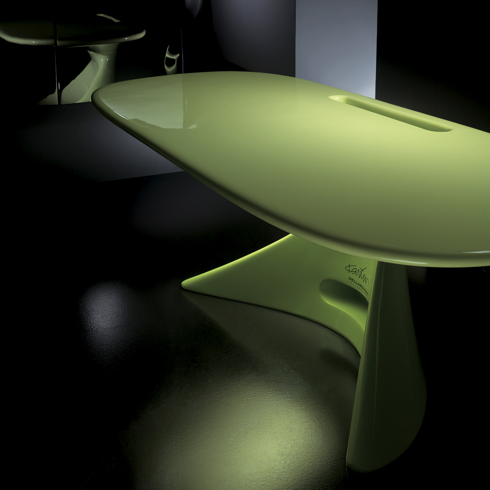 Detta skrivbord har en självbärande kropp, tillverkad av gjutning av härdplaster och förstärkt med glasfiber.
