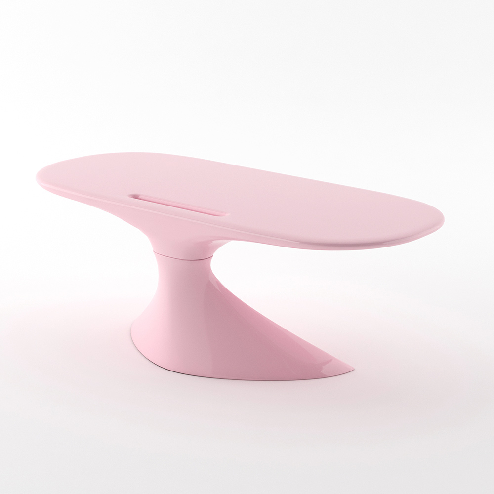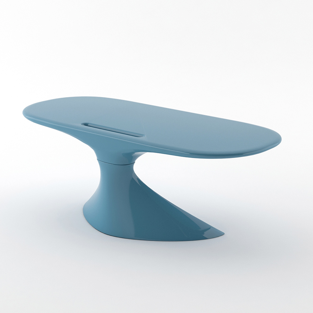 Skrivbord med en originell och modern design, kännetecknad av enkla och slingrande linjer.